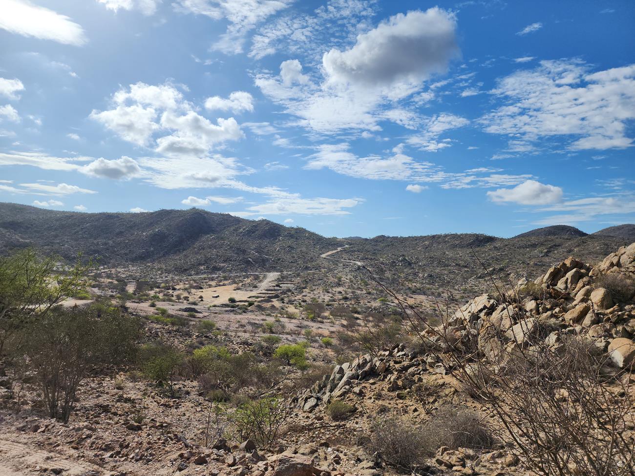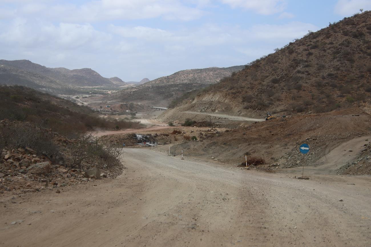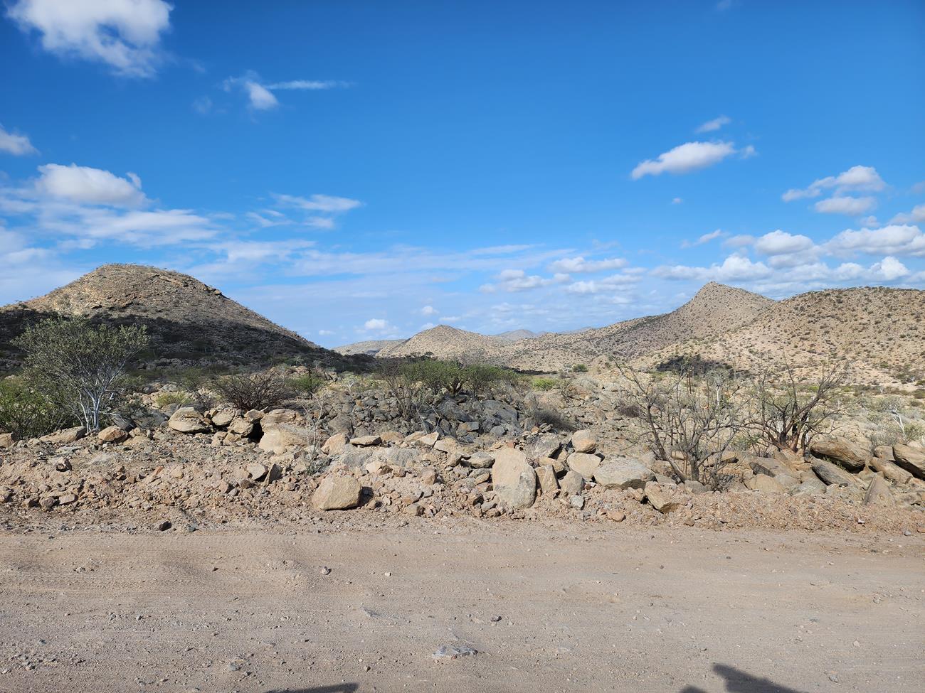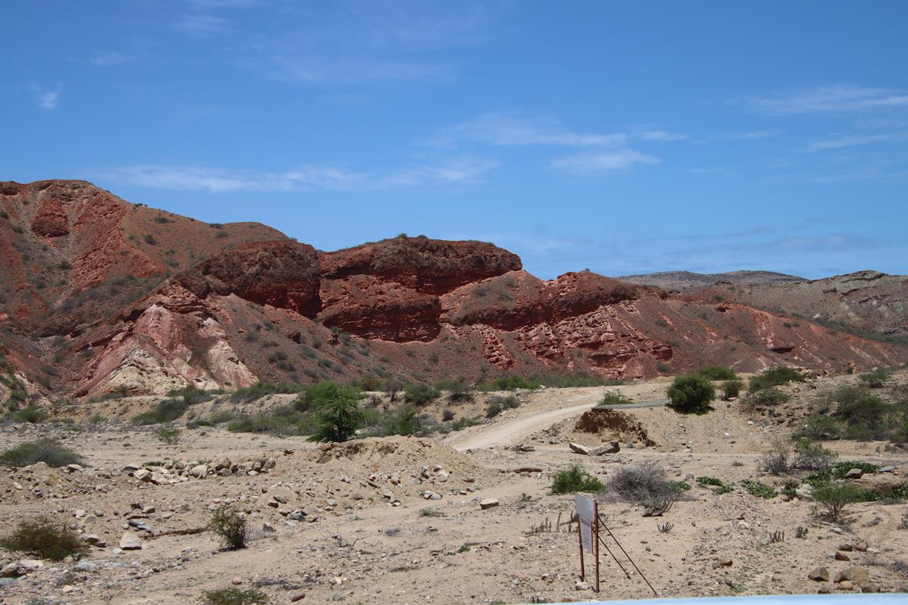 Direction Moçamedes. La route se transforme en piste rapidement et les beaux paysages arides et montagneux commencent à se dessiner.
