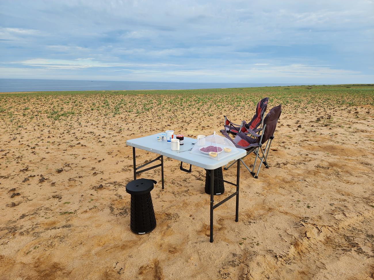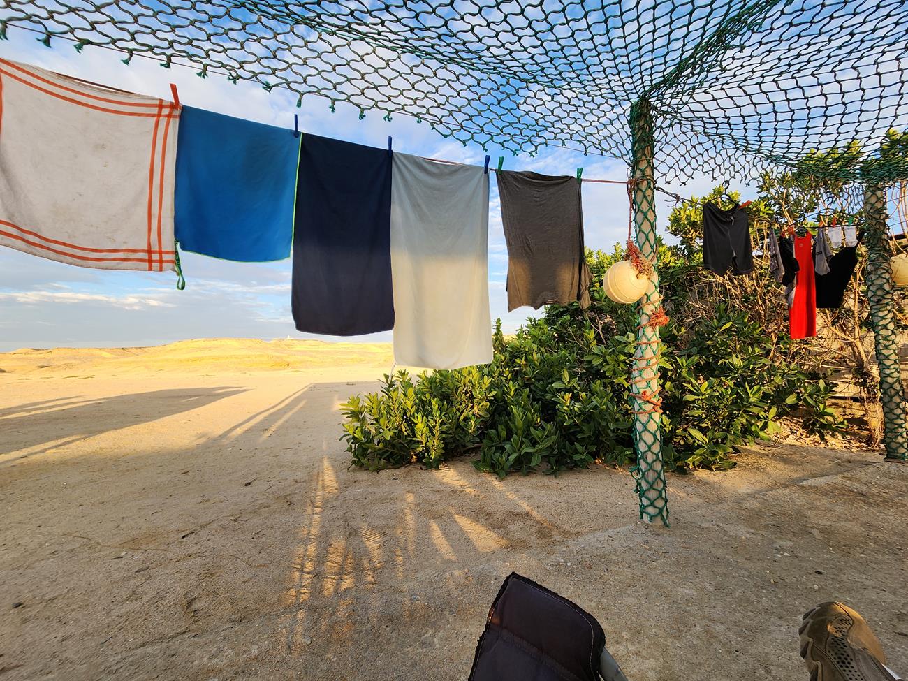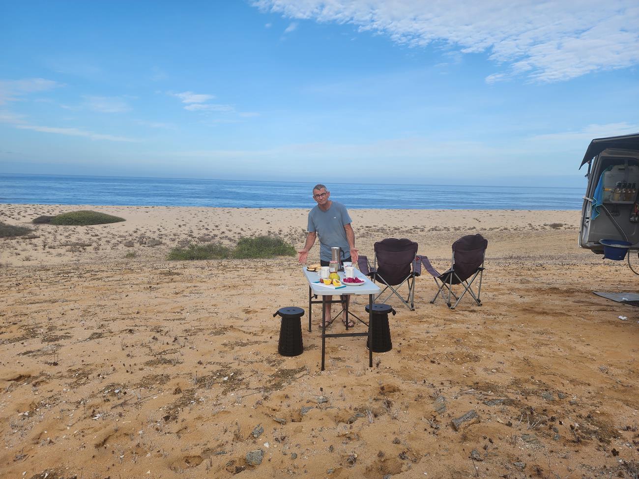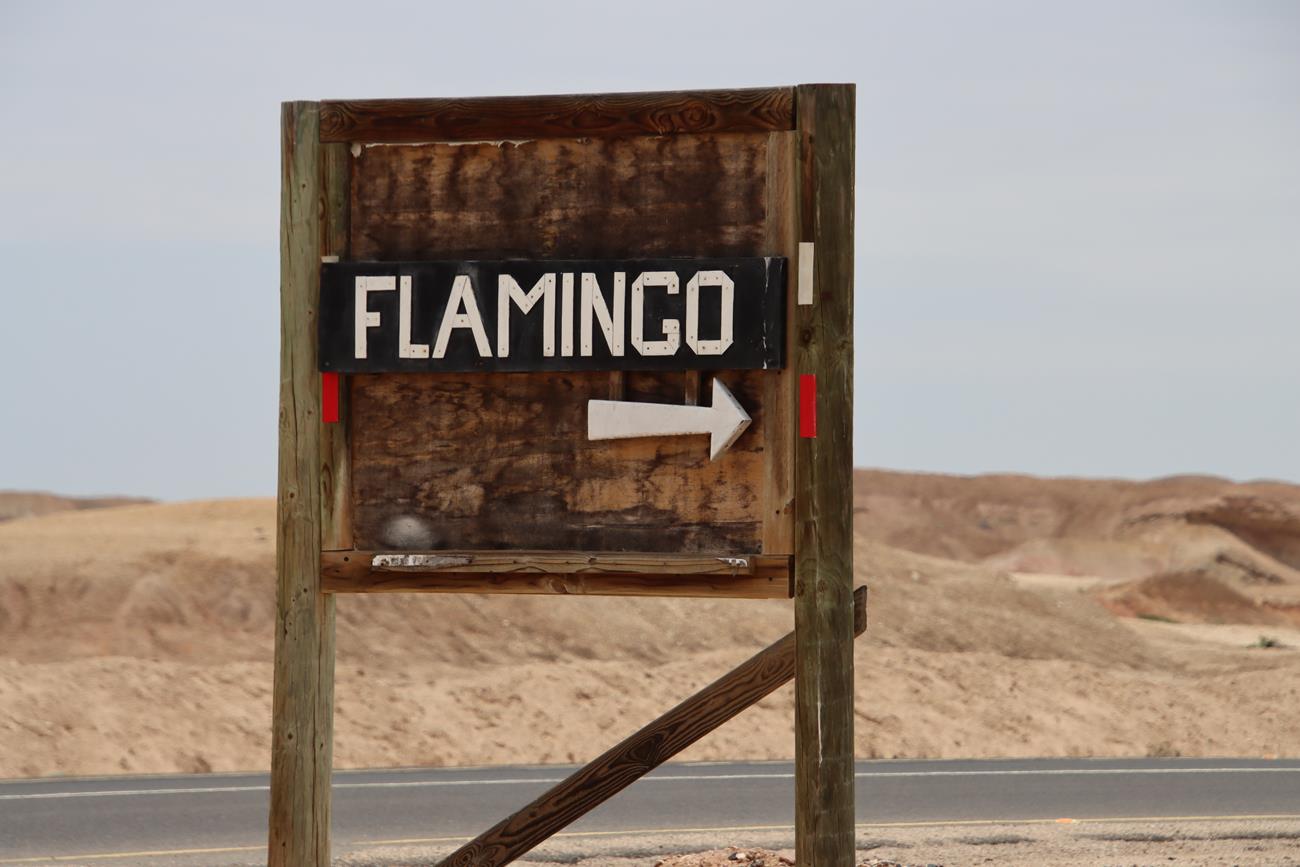 À l’arrivée au Flamingo nous trouvons un emplacement avec sanitaire complet et eau chaude. Un abri pour se protéger du vent avec ce qu’il faut, évier, table… pour 30 $ !