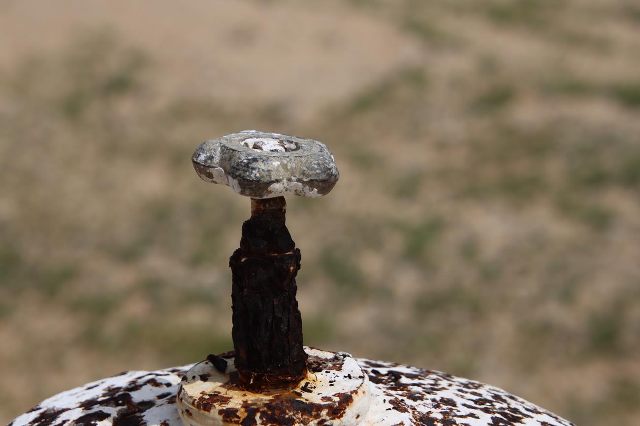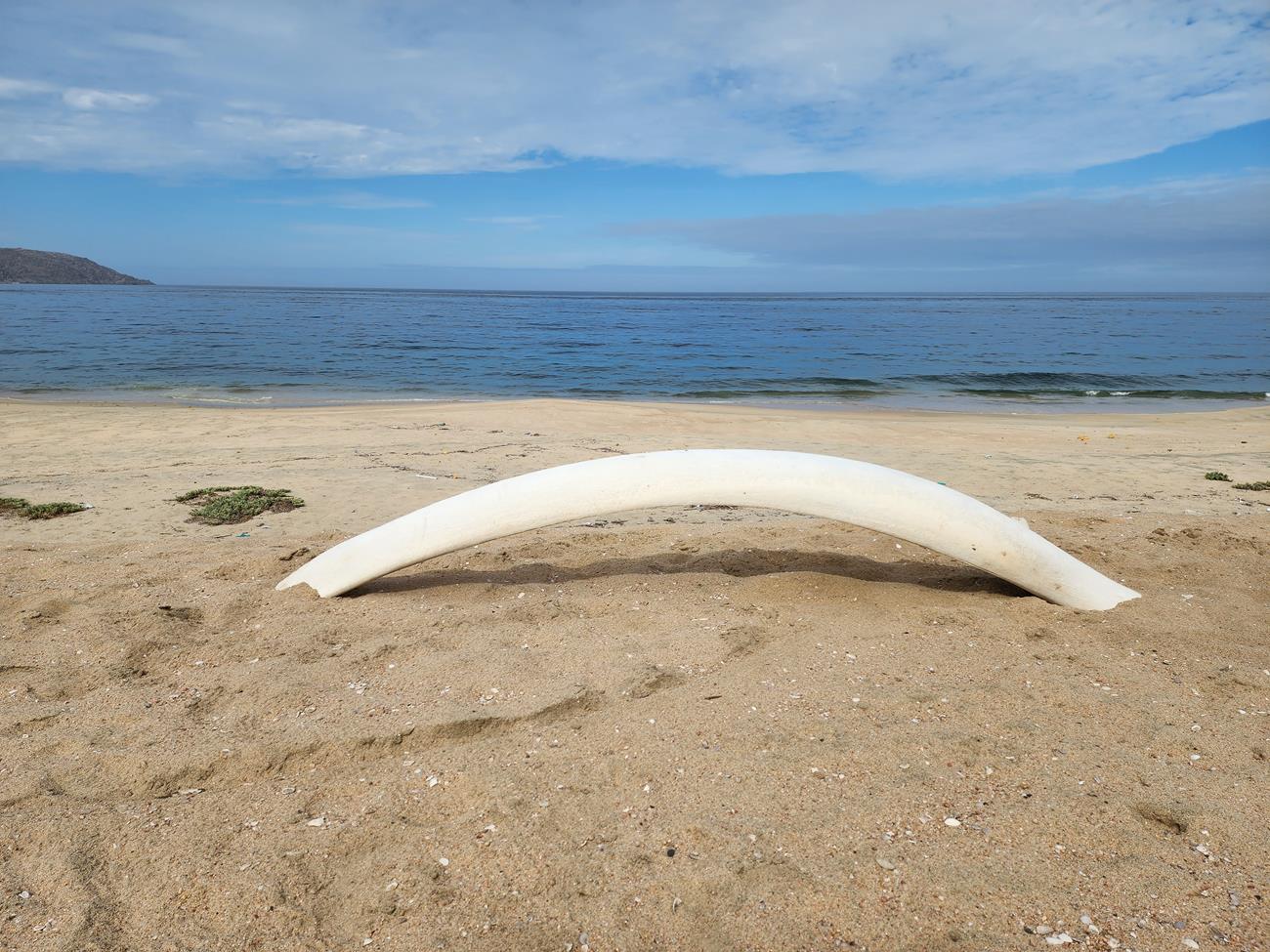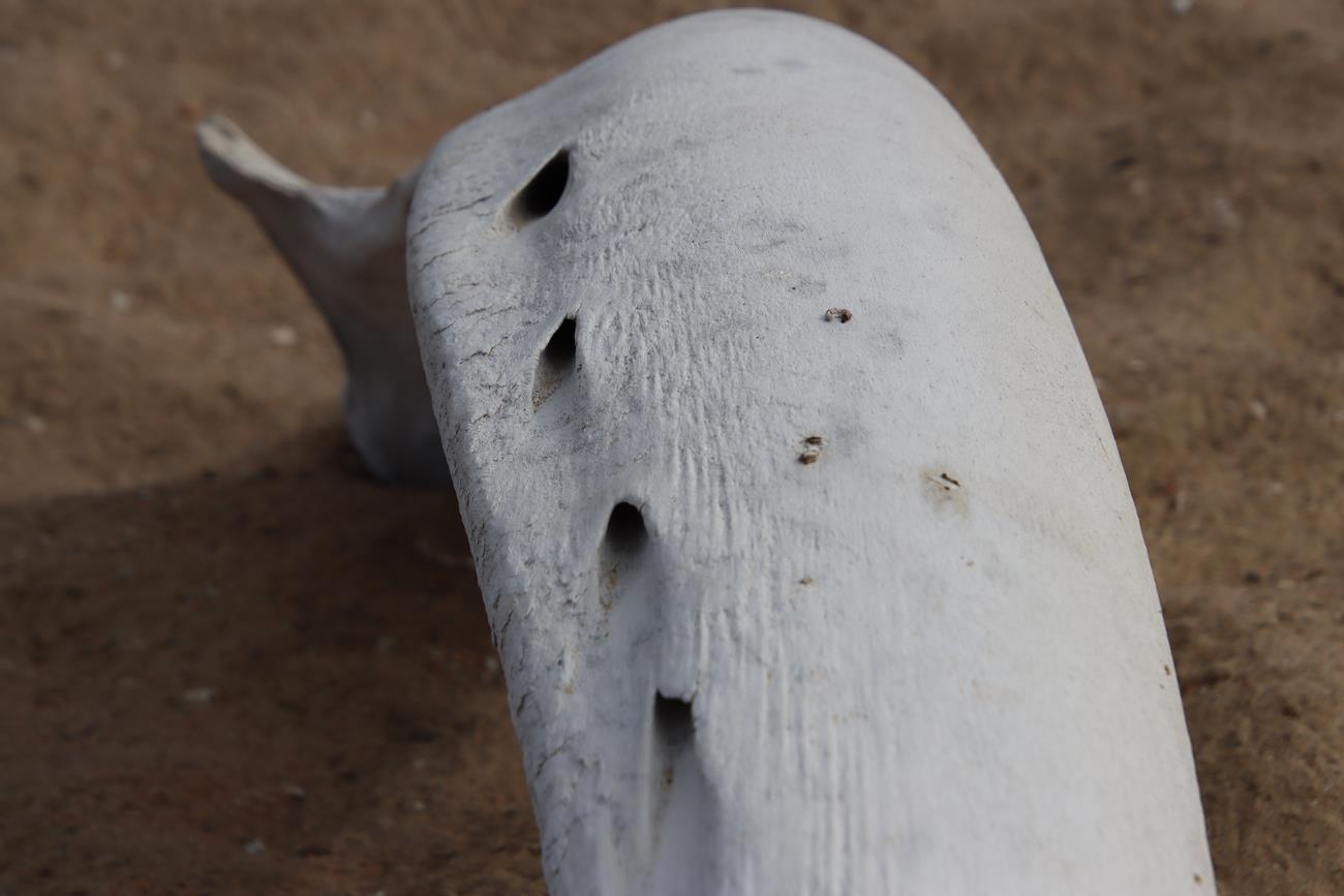 Une tache blanche attire notre attention. Vertèbre de baleine.