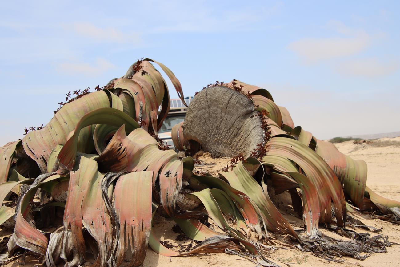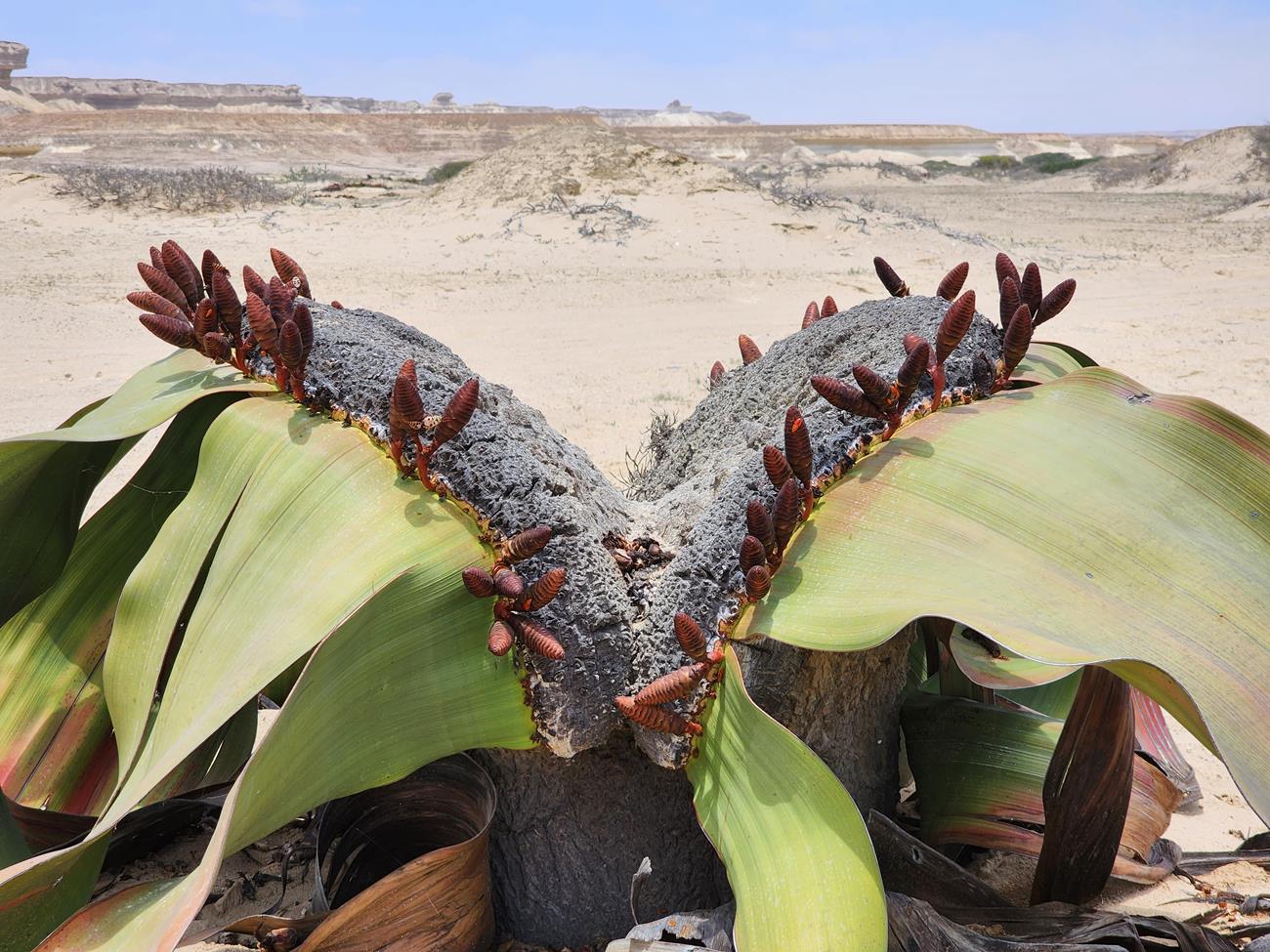 C’est un défilé de welwitschias que j’avais surnommées en Namibie « grosse salade flétrie » Ici c’est étrange, elles me donnent l’impression d’être juste endormies et que soudain leurs grandes feuilles vont se mettre en mouvement. De grandes tentacules vont alors s’agiter dans tous les sens et bien sûr venir nous avaler tout cru !
