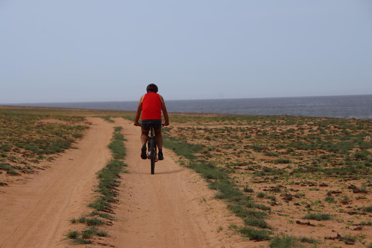 10 km plus loin, le sable et le vent de face auront raison de mon cycliste. Nous passons rapidement à Moçamedes pour acheter de l’eau et du pain.