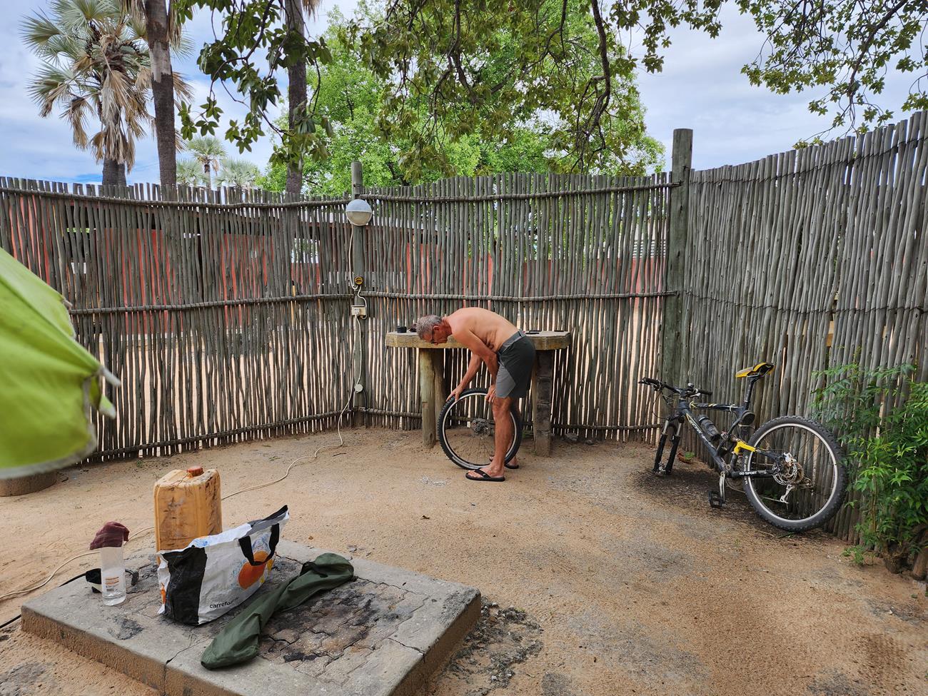 Départ pour Epupa falls. Mais avant petit footing et un peu de vélo pour Yannick.