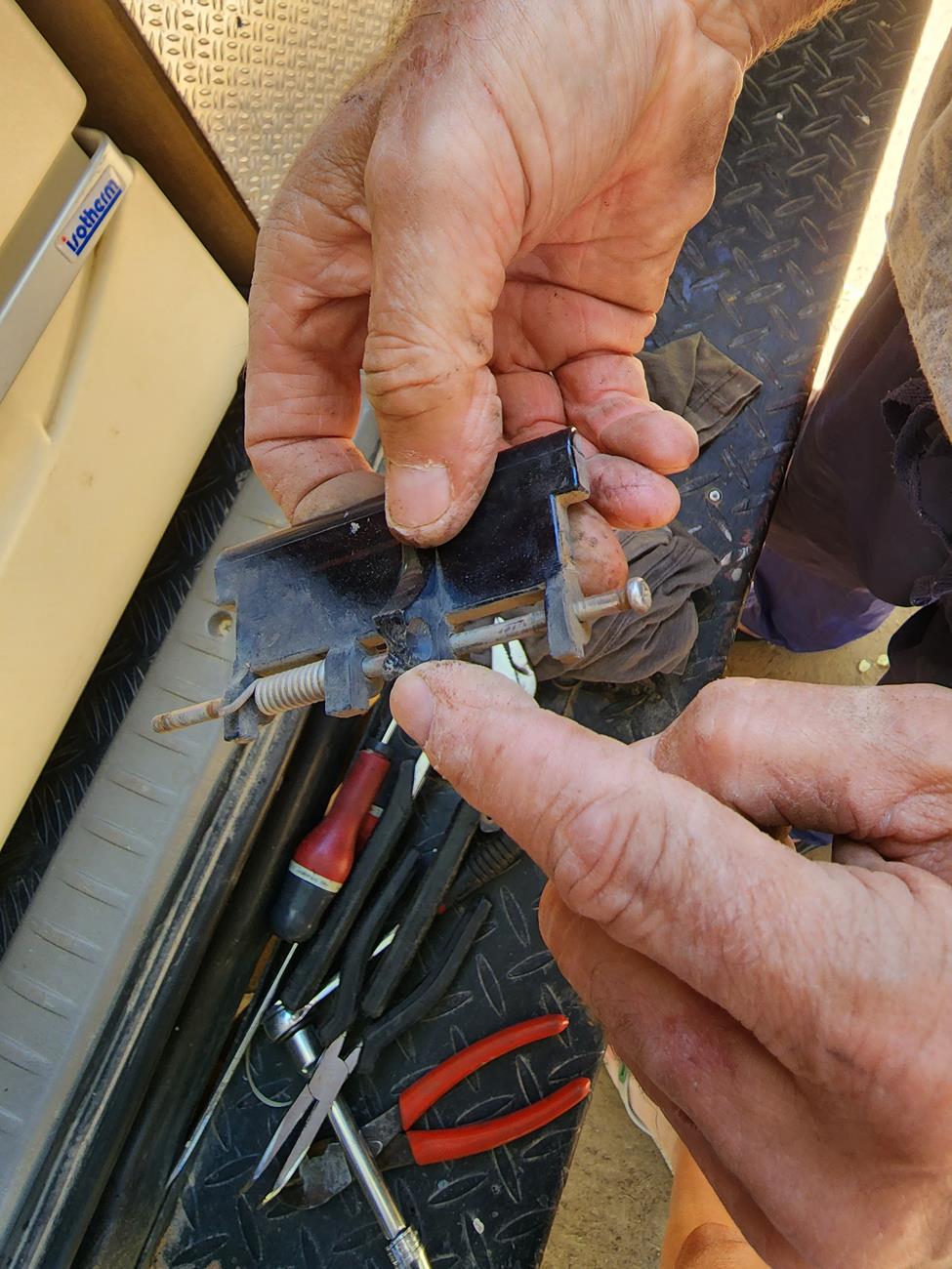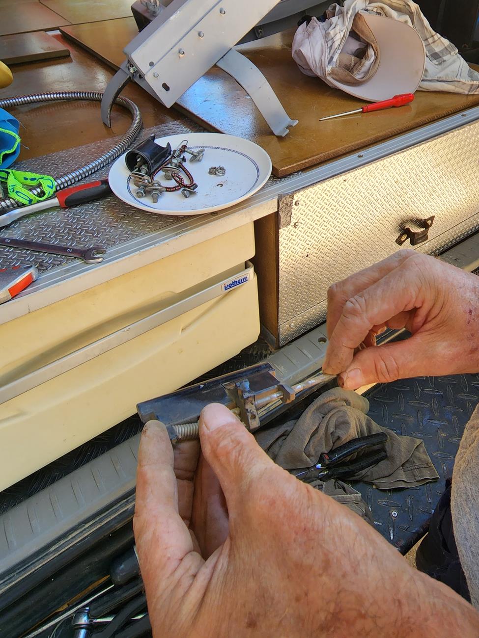 Réparation du mécanisme. Il démonte tout et trouve une solution « article 15 »