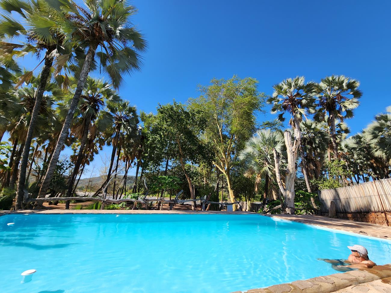 Le camping Epupa Falls niché sous les palmiers au bord de l’eau, est un véritable havre de paix.