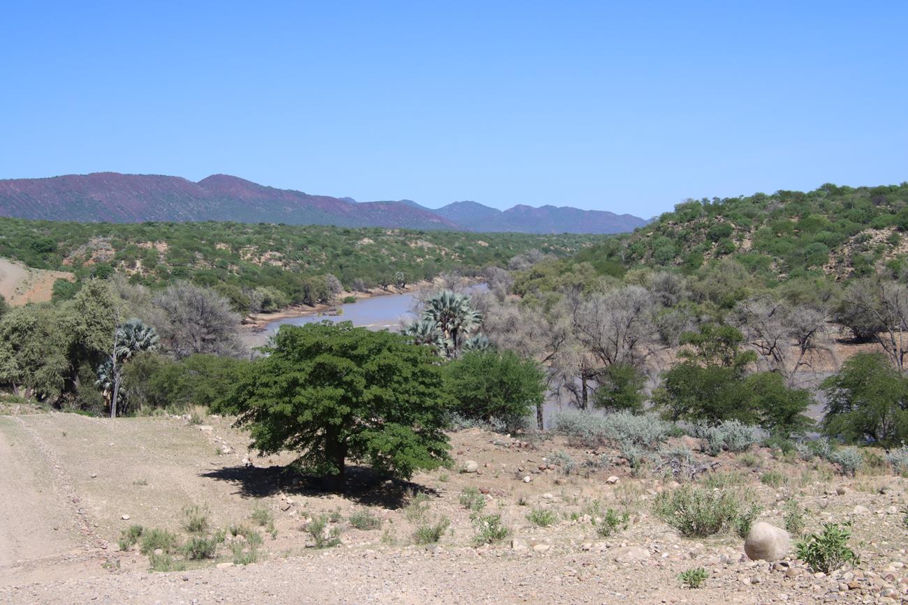 Nous continuons notre route à la recherche d’un endroit pour camper. En hauteur, vue sur la Cunene, plan, etc…