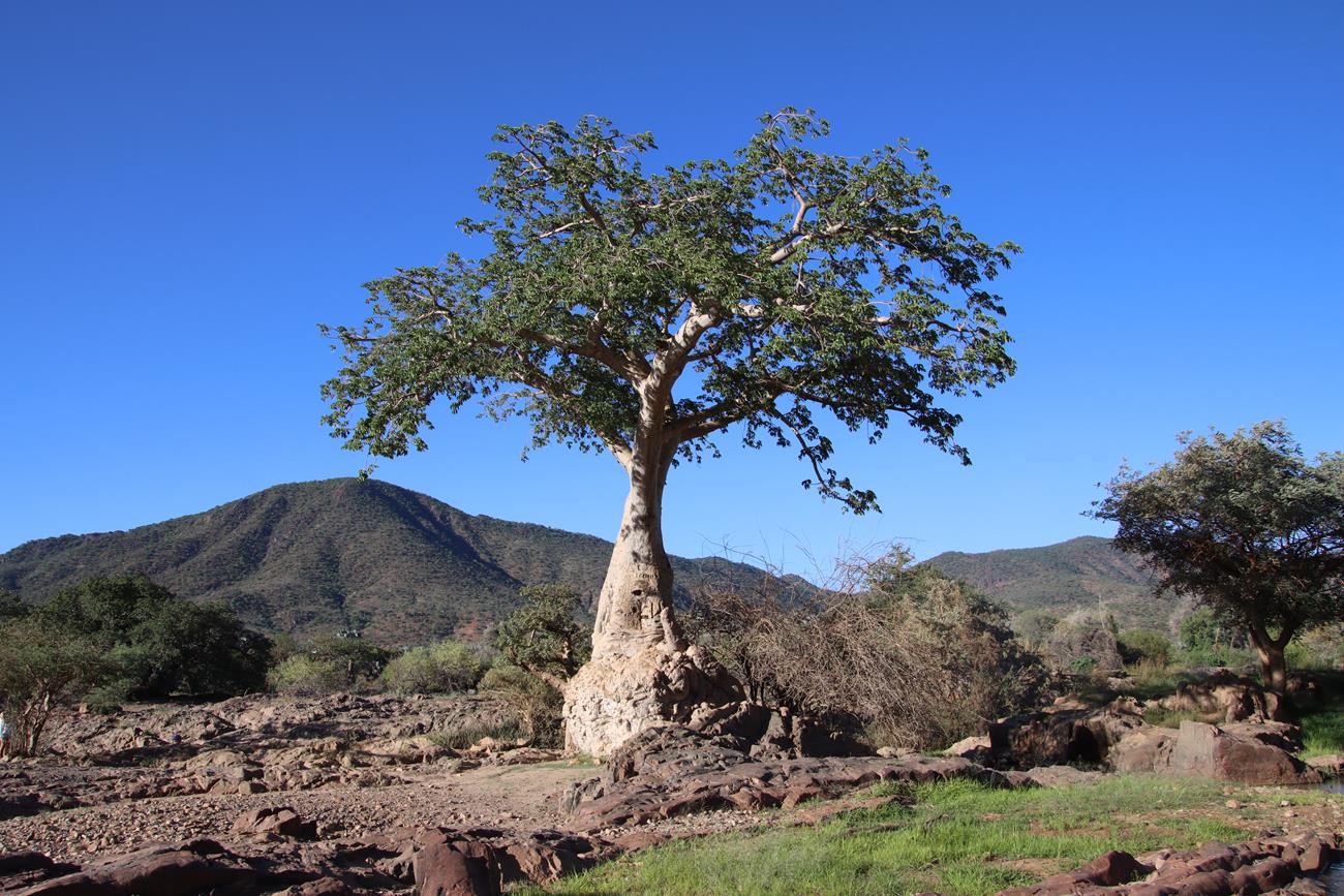 Il nous fait découvrir cette plante dangereuse pour les yeux. Elle ressemble à un cactus, mais ce n’en est pas un. Cet arbre à poison qui a toutes les caractéristiques d’un cactus, épines, environnement aride, aspect, porte le nom d’Euphorbe. Sa sève, une espèce de latex blanc, est très dangereuse pour la peau, la bouche et surtout les yeux, car elle peut rendre aveugle instantanément. Alors, si vous la rencontrez passer votre chemin ! Les Hymbas l’utilisent pour soigner des douleurs articulaires et aussi pour la chasse.