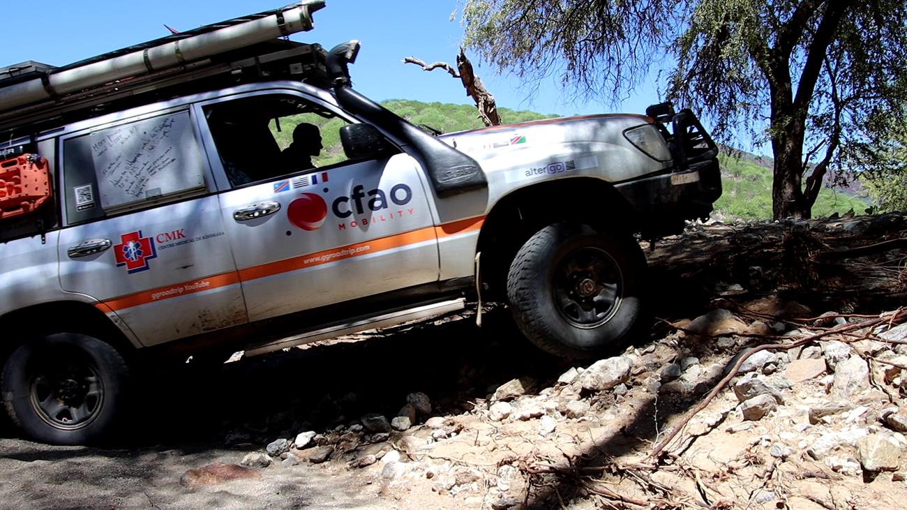 En chemin nous rencontrons un marcheur allemand. Impressionnant, il fait entre 35 et 40°, ça monte souvent Whouaaa… en voulant lui donner de l’eau, Yannick se rend compte que la porte arrière de la voiture est coincée. On verra plus tard, le monsieur nous explique qu’il a fait 50 pays et lorsqu’il voit le drapeau congolais sur la portière il me demande si nous avons voyagé dans ce pays !