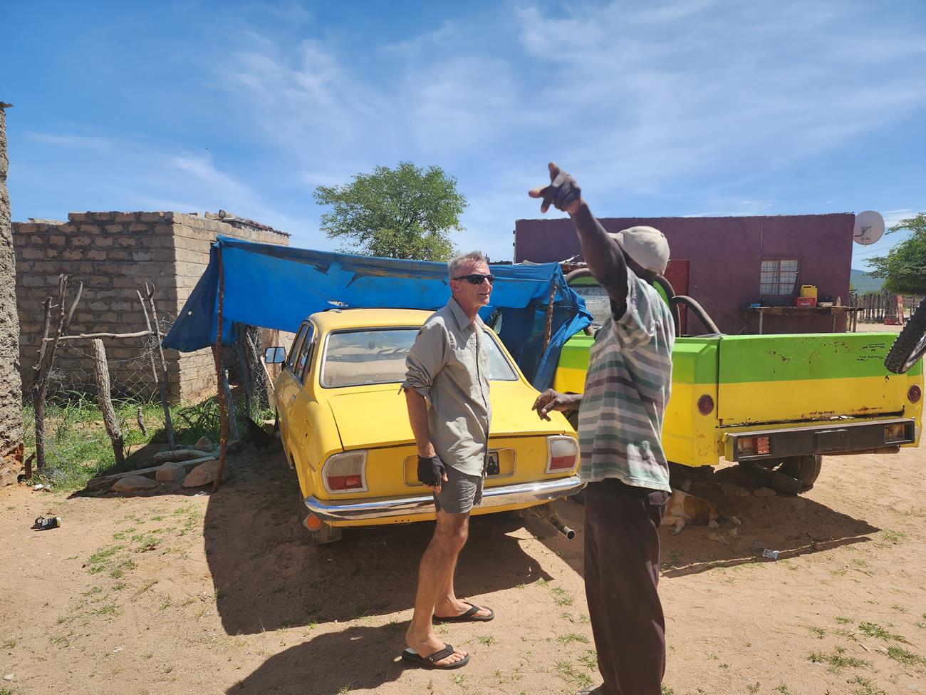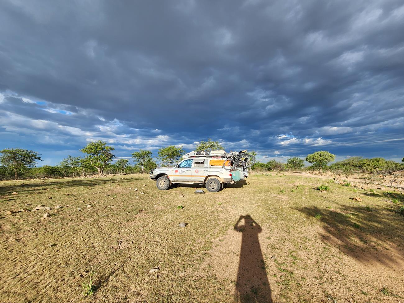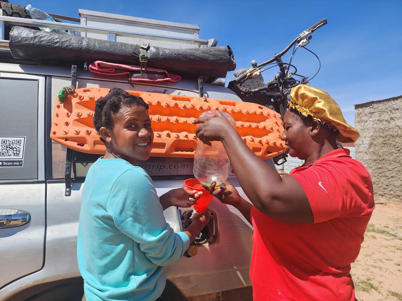 A Okangwati, nous ne pouvons acheter que 15 litres de carburant. Heureusement Yannick avait fait le plein des deux réservoirs sous le capot moteur.