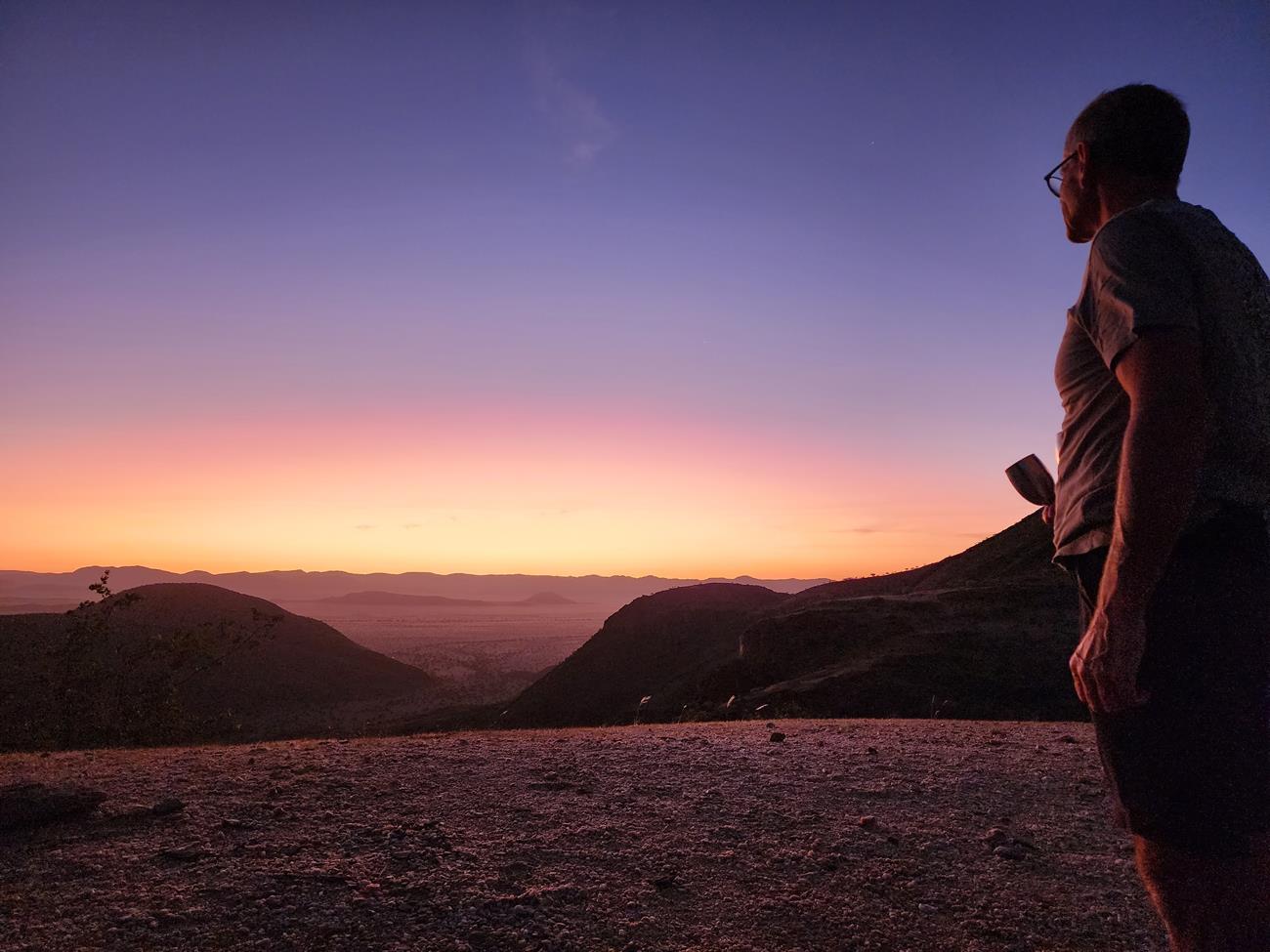 Que dire sur cet endroit ? Magique, émerveillement constant. Les paysages nous offrent une palette de couleurs fabuleuse. La sensation d’être seuls au monde dans cette région reculée du Kaokoland ne fait qu’accroître notre plaisir. Cette vallée semi-désertique entre des chaînes de montagnes, s’étend sur environ 80 km jusqu’au fleuve Kunene, à la frontière angolaise. Et en plus il y a de l’herbe ! caprice N° 2 voir du vert dans la Marienfluss