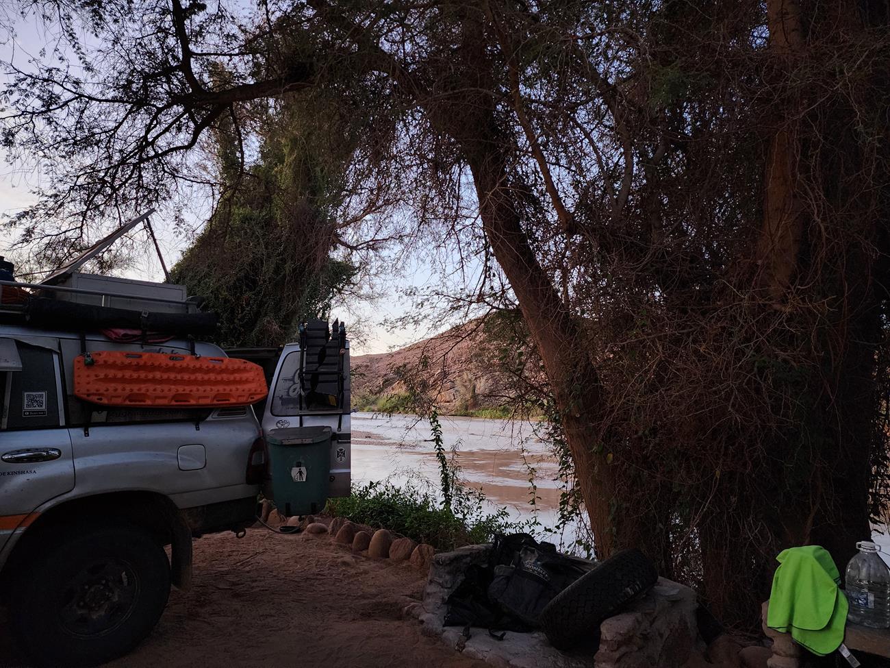 Camp Syncro au bord de la Kunene, très sympa