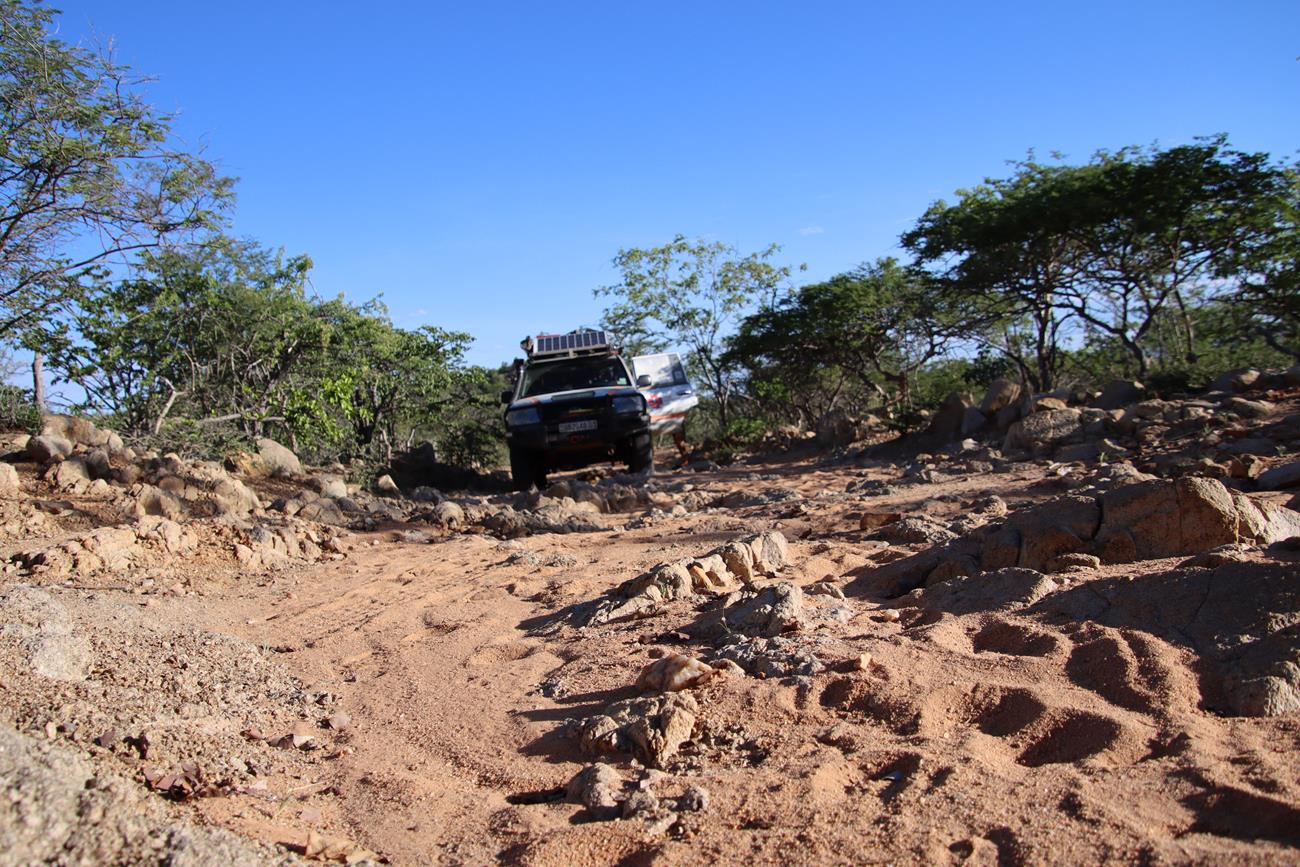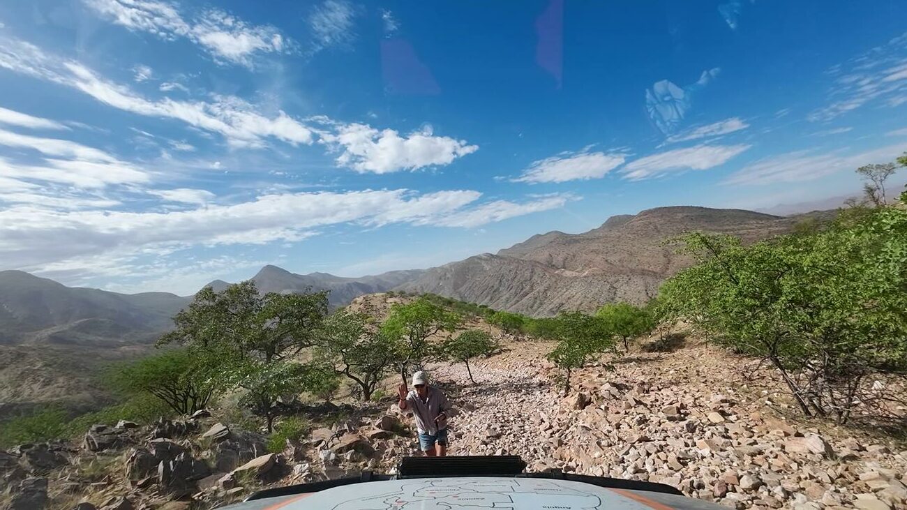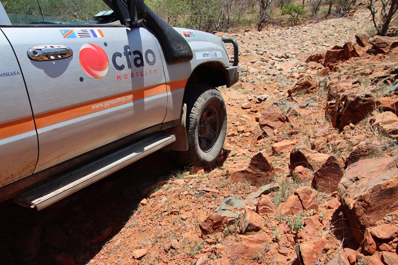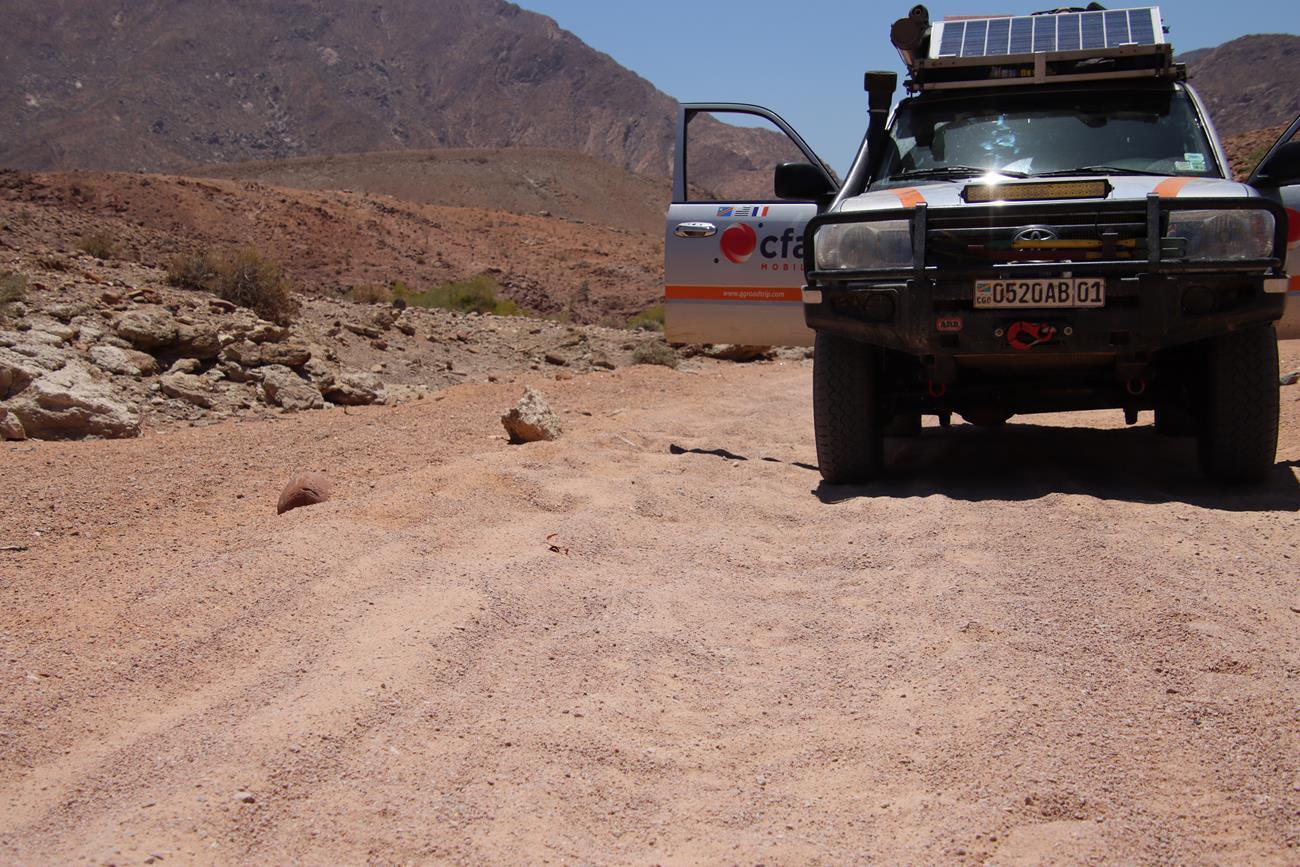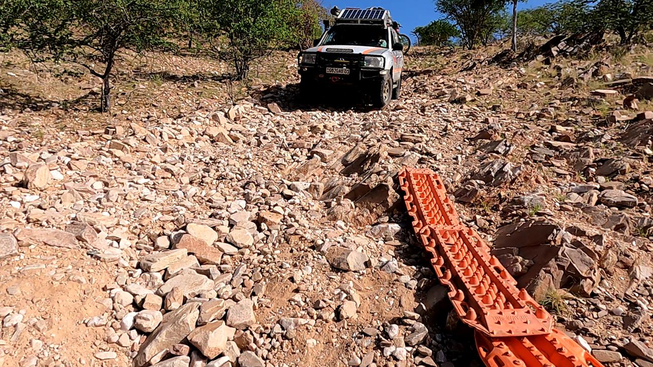 Gardez toujours en tête que l’on n’est jamais sûr de ce que l’on peut rencontrer. Il suffit d’une grosse pluie pour déstabiliser la piste ou un passage de bétail des Himbas. Les bêtes remuent la piste, ce qui peut entraîner une perte d’adhérence des véhicules sur certaines des plus petites montées et des glissades importantes dans les descentes.