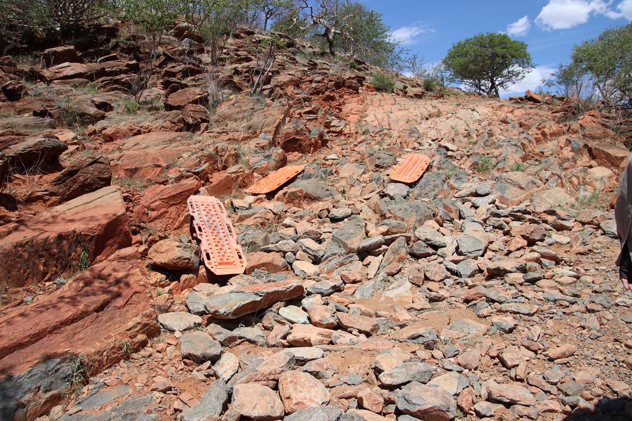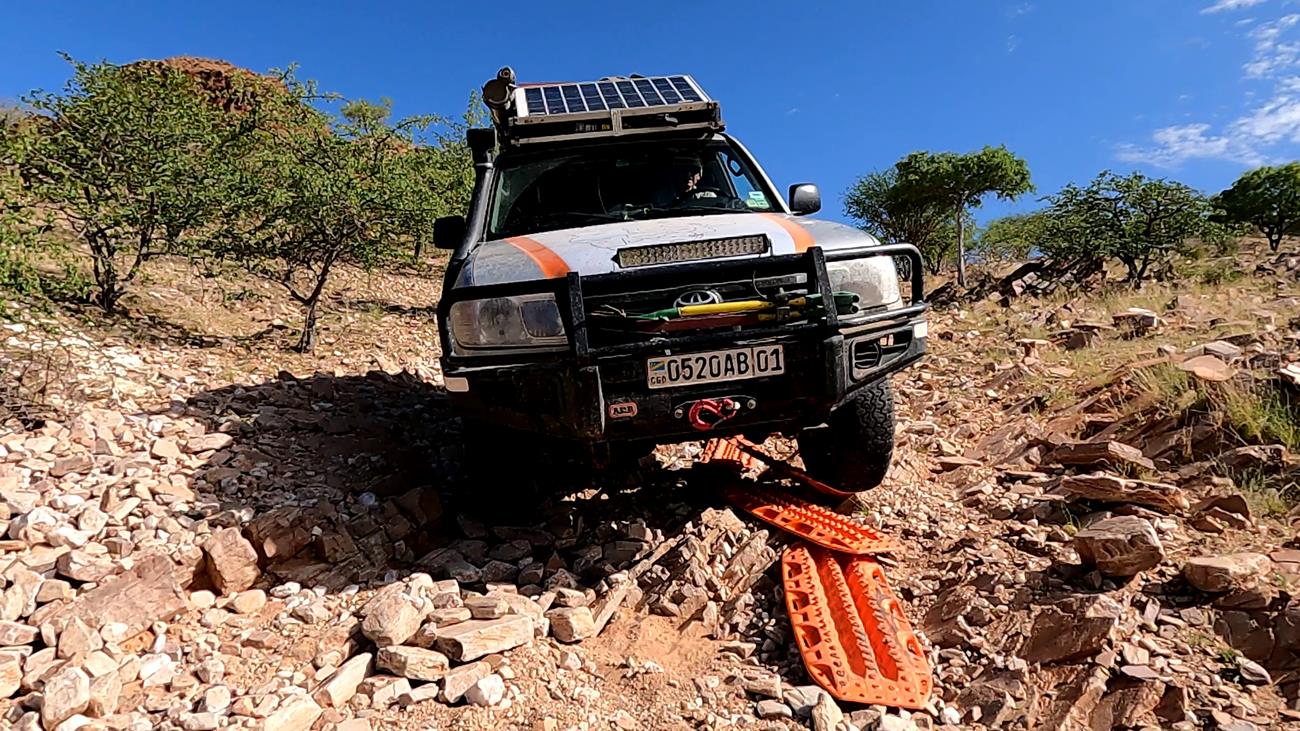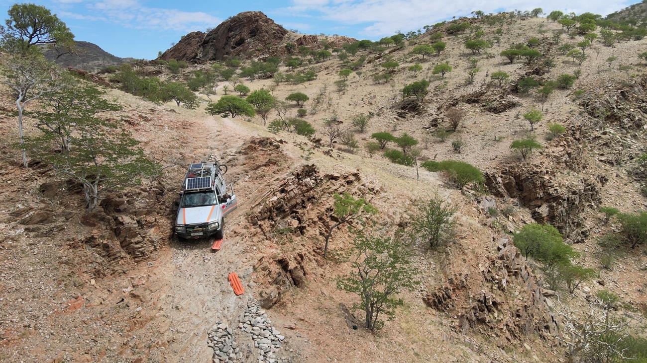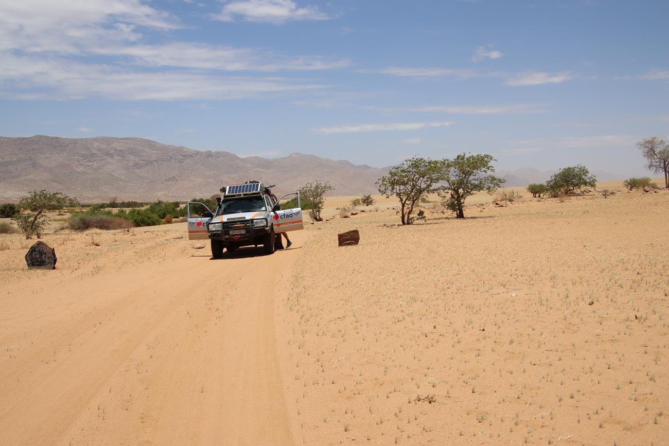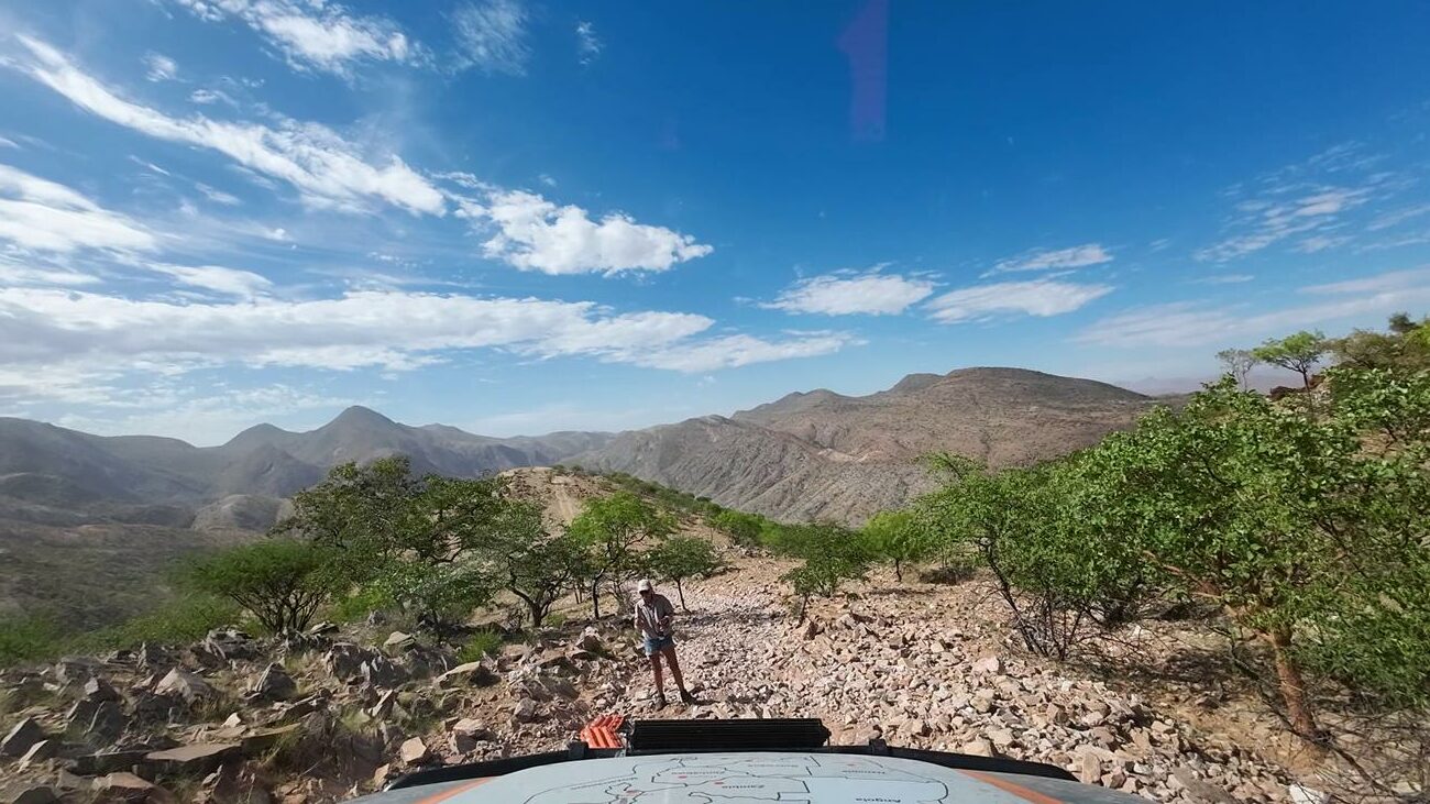 Gardez toujours en tête que l’on n’est jamais sûr de ce que l’on peut rencontrer. Il suffit d’une grosse pluie pour déstabiliser la piste ou un passage de bétail des Himbas. Les bêtes remuent la piste, ce qui peut entraîner une perte d’adhérence des véhicules sur certaines des plus petites montées et des glissades importantes dans les descentes.