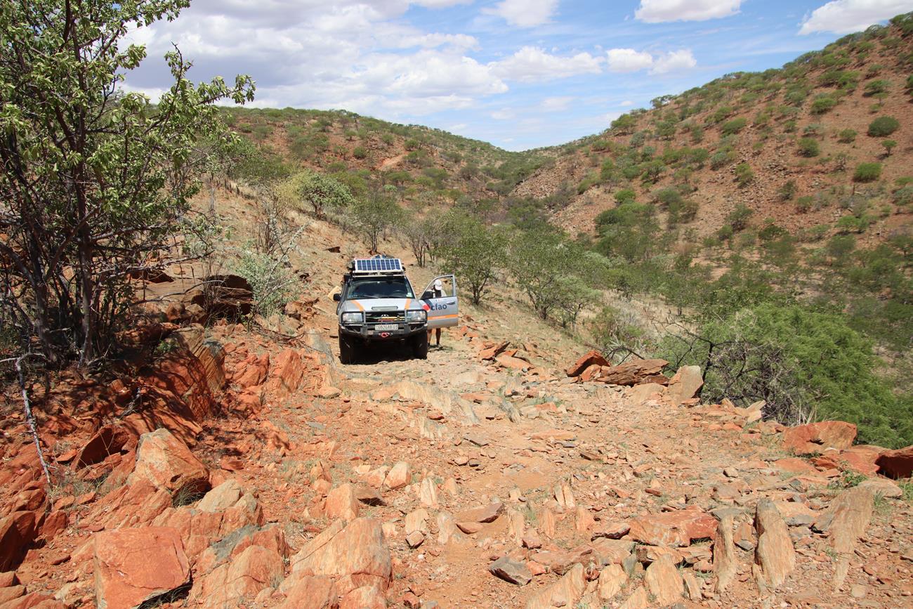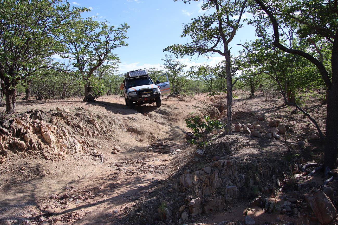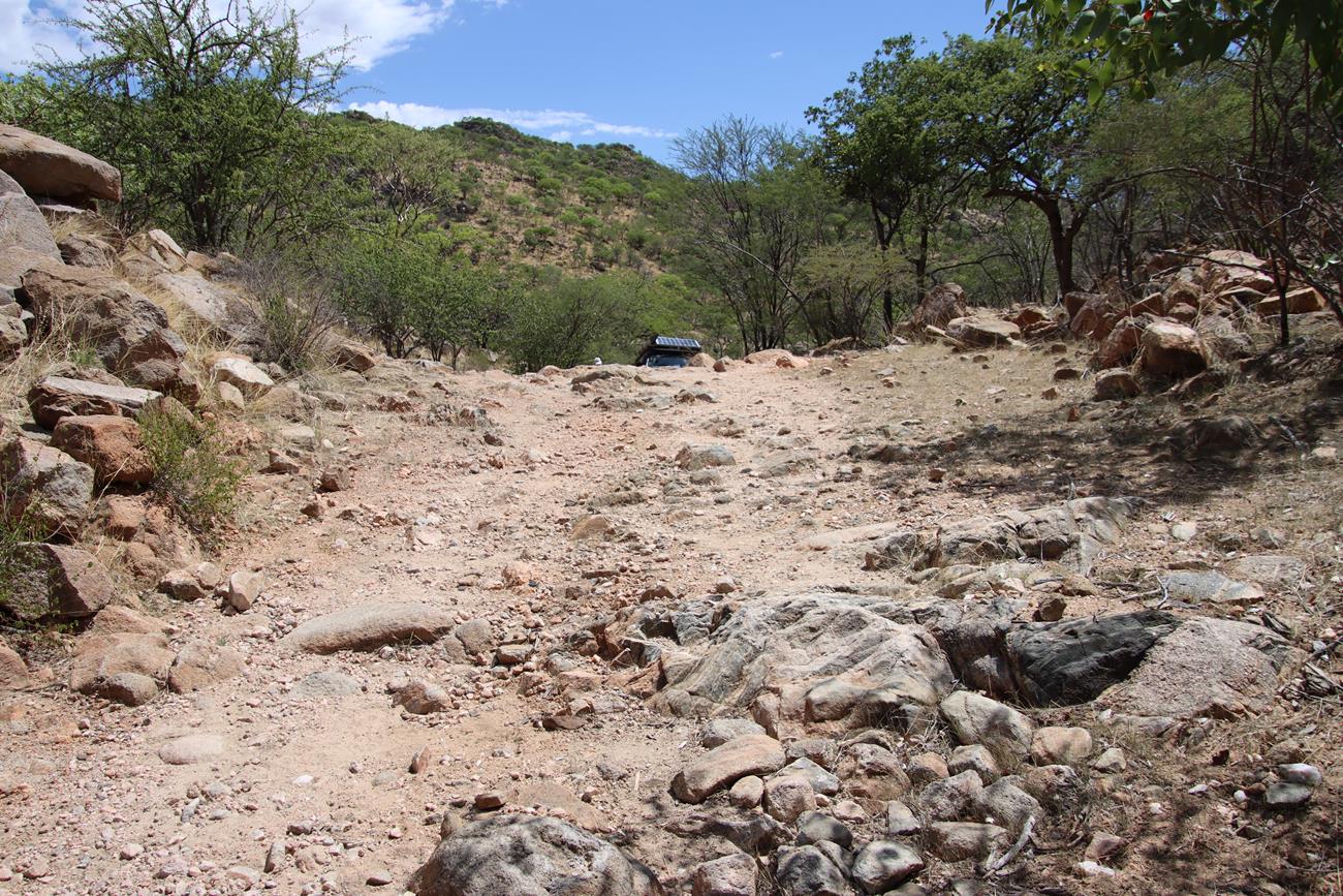 Comme en 2015, nous nous sommes posés la question . Van Zyl’s pass , oui ou non ? C’est oui. Nous quittons Okangwati , il fait chaud et la piste est vraiment dans un sale état.