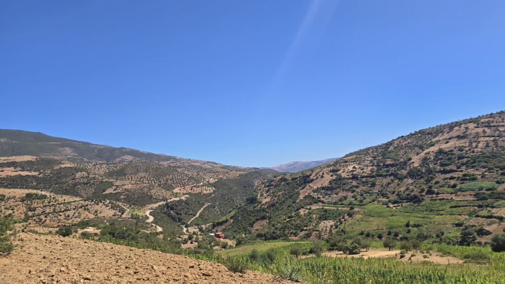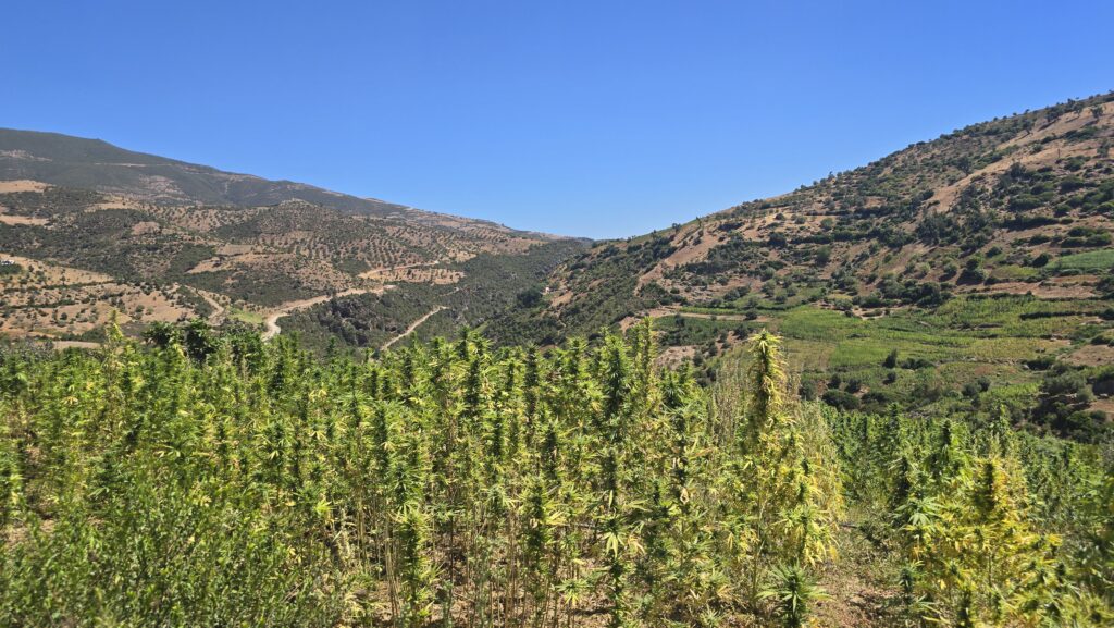 En circulant sur les pistes du Rif, on comprend vite que le cannabis n’est pas juste une plante : c’est une partie du décor. Entre deux virages, les collines se déroulent comme un patchwork vert, et les petits villages semblent posés là, hors du temps. Ici, depuis des générations, les habitants vivent au rythme du kif. Pas par choix, mais parce que ces montagnes rudes n’offrent pas grand-chose d’autre.