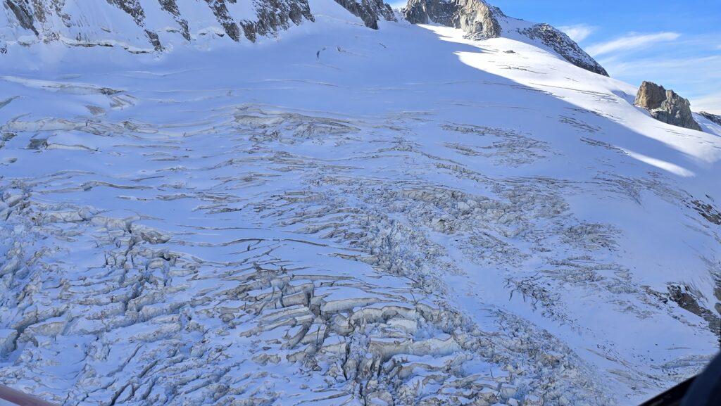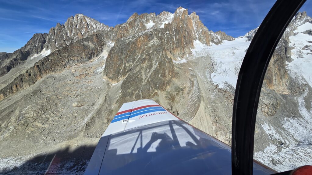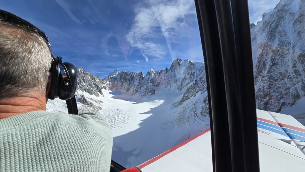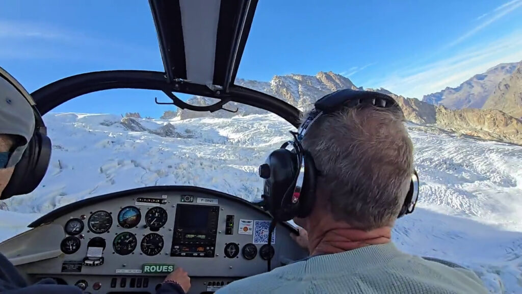 Nous survolons tous les glaciers avec l’impression, à chaque instant, de pouvoir toucher les parois des montagnes.