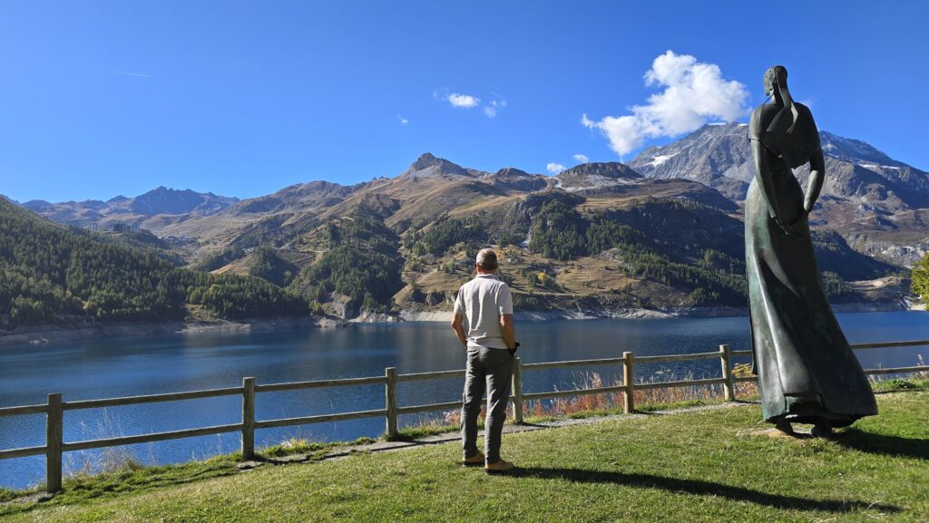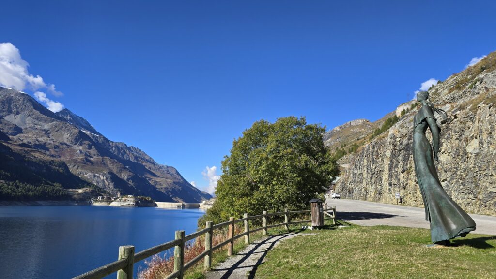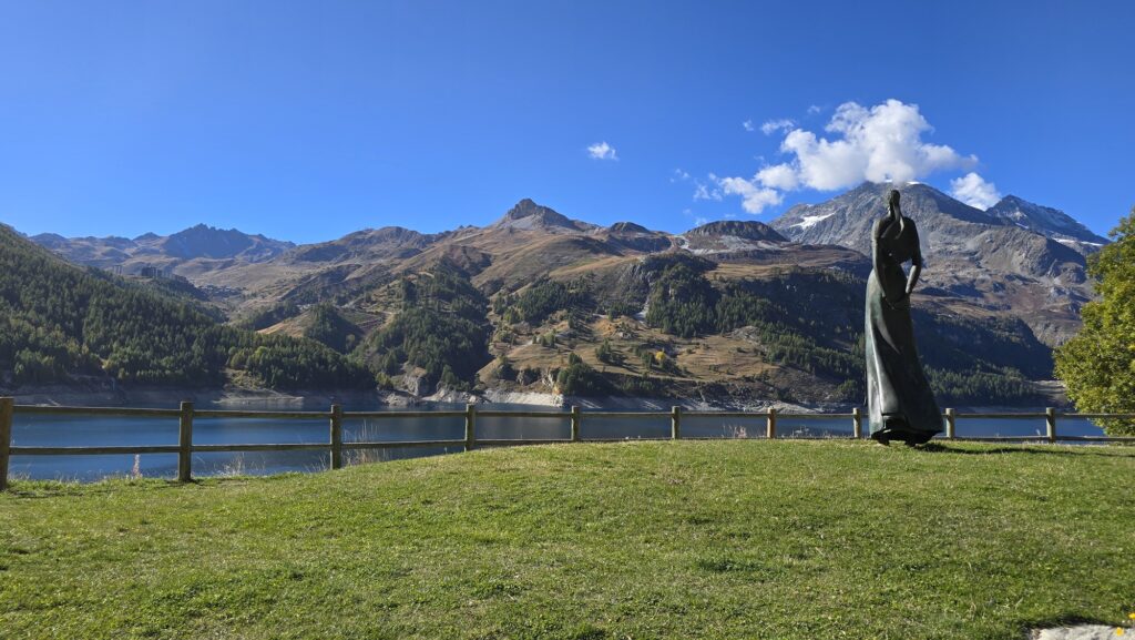 La Dame du lac du Chevril est une statue commémorative située près du barrage de Tignes. Installée en 2002, elle rend hommage aux habitants de l’ancien village de Tignes, englouti en 1952 lors de la mise en eau du barrage.