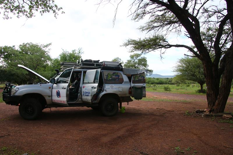 16 janvier : nous nettoyons la voiture, bâche de sol, fauteuils etc avant de quitter le camp. C’est ici je fais ma deuxième boulette ! Nous avions des ponchos en plastique très fin pour se protéger de la pluie et avant de les remettre en place je cherche un endroit pour les faire égoutter. Je tourne autour de la voiture, rien à droite, rien à gauche, rien derrière, ah voilà ici c’est parfait, le schnorkel. J’enfile la capuche du poncho dessus et soudain VRRRCHIIICLIIOUU, « YANNICK !!!! Coupe le moteur !!!! »Et oui je ne savais pas que c’était comme un aspirateur ce truc la !!! Rien de grave pour la voiture mais mon ponchos à 1$ est fouti ! Yann me regarde dubitatif : « mais enfin gg ….. » oui oui ben moi je ne savais pas. On m’a expliqué que l’on pouvait passer dans des rivières sans problème avec ce truc et voilà que dès qu’on lui met un poncho sur le nez il tousse !!!! Ça se termine avec deux gros éclats de rire !