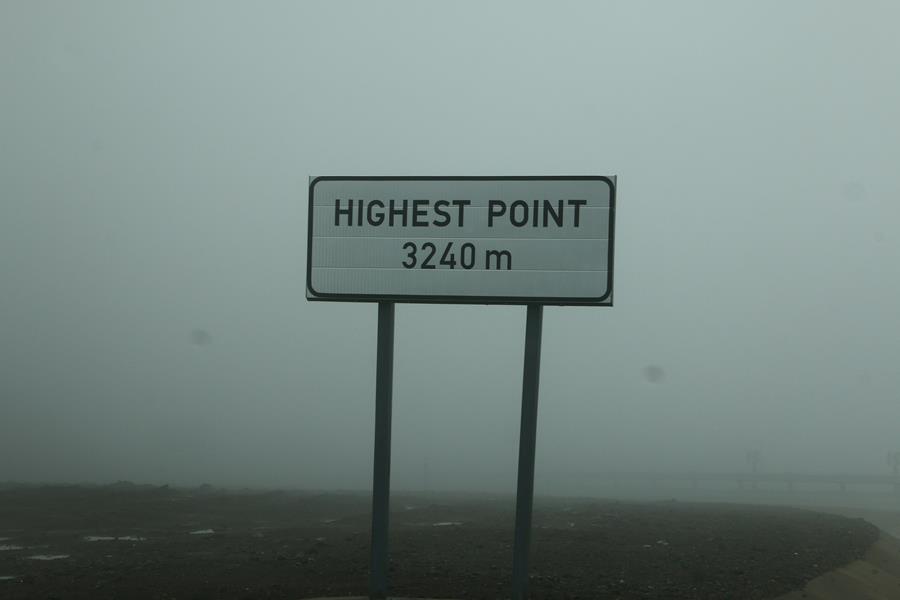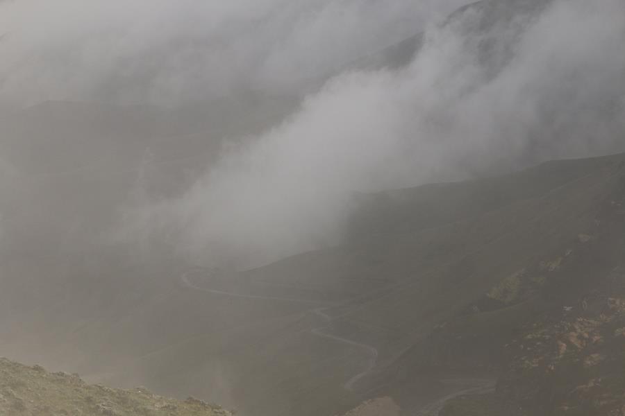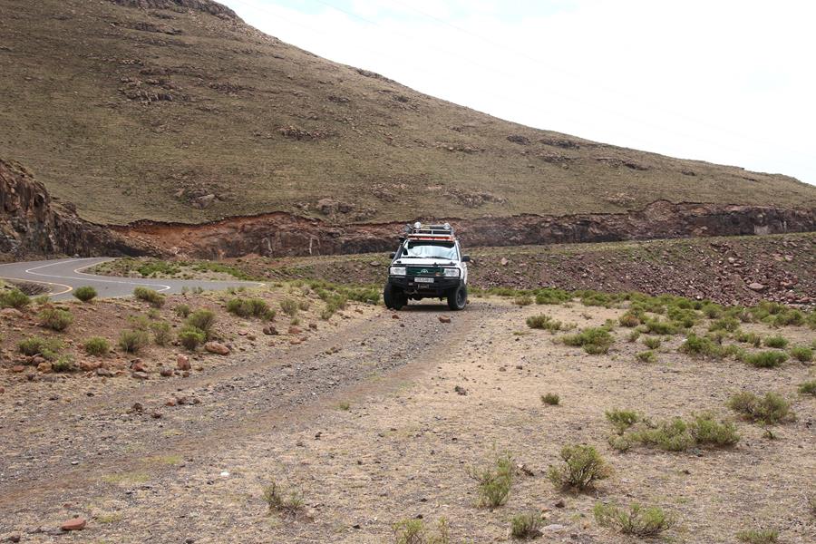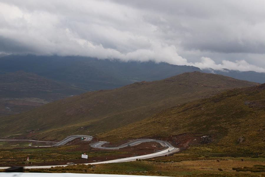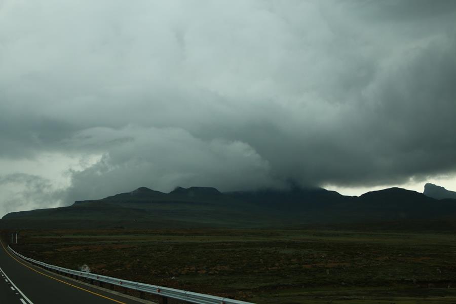 1er janvier 2016 : Direction le mythique Sani pass, frontière entre le Lesotho et la RSA à l’Est. Le ciel est gris, il pleut, les cols sont raides, nous montons à 3240 m toujours sans lacet, pas chichi ici, c’est taillé dans la montagne, moteur poussif, s’abstenir ! La pauvre Toy, comment nous l’a faisons souffrir, le sec, le chaud, le très sec et le très chaud, les cailloux, la tôle ondulée, le froid, les grosses montées en 1ere réduite, les grosses descentes et tout ça chargée comme une mule !