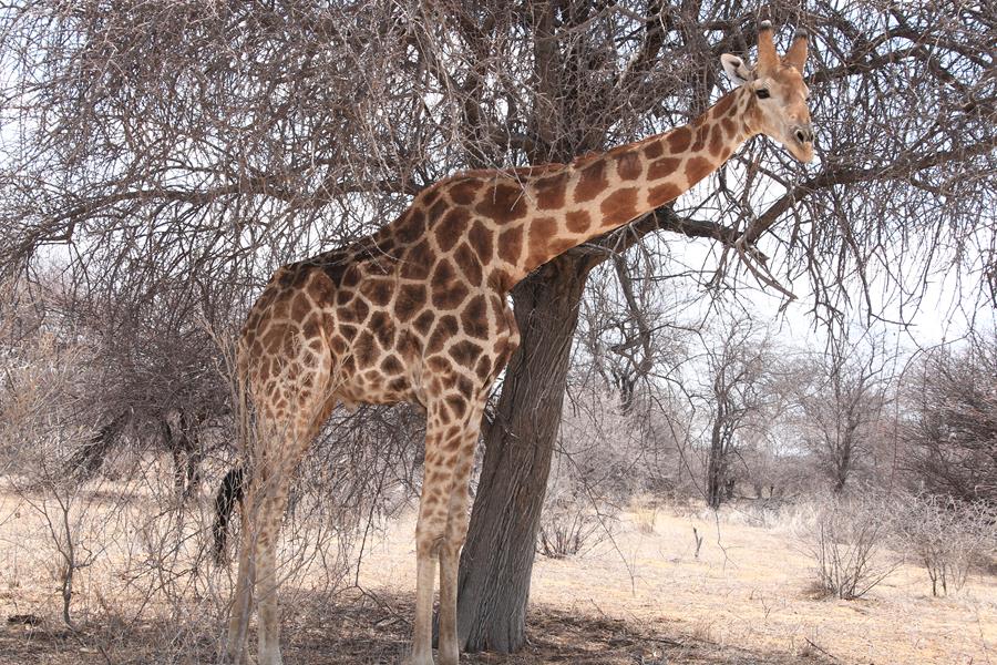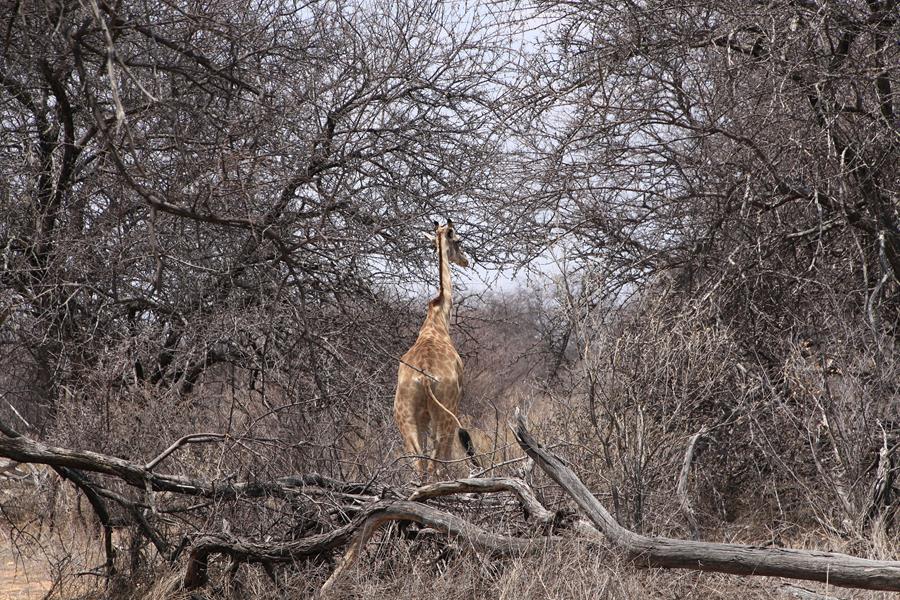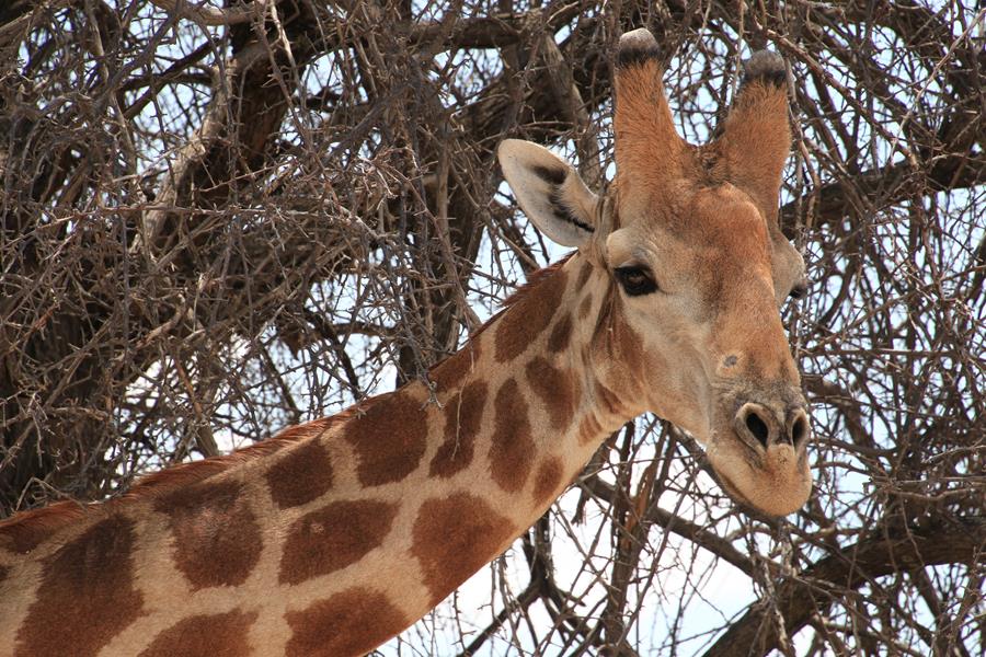 Ils doivent arriver vers 15h, en attendant nous partons en ballade dans le park. 1ere girafe à 2 m de la voiture et Yann ne la voit pas !!!