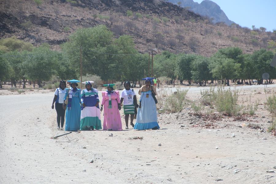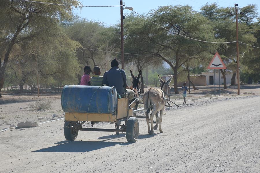 Opuwo, Sur le guide j’avais lu que la 1ere impression est rarement positive, je confirme. C’est moche et poussiéreux. Nous cherchons un shop pour les courses. 2eme impression : Toujours pas positive ! Il n’y a rien, quelques boites de conserves, des sardines et du thon et c’est tout. Coté Oméga 3 on est au top ! Je trouve un peu de pain et 12 œufs dont 9 passeront directement du mode consommable au mode poubelle et un sac de 10 kg de patates, ouf, on est sauvé avec ça. 3 eme impression : Toujours négative en voyant tous les Himbas, hommes, femmes et enfants assis à droite à gauche à moitié ivre en train de mendier .. Il faut dire qu’à Opuwo des cars entiers de touristes se déversent chaque jour pour les prendre en photo. C’est très triste.