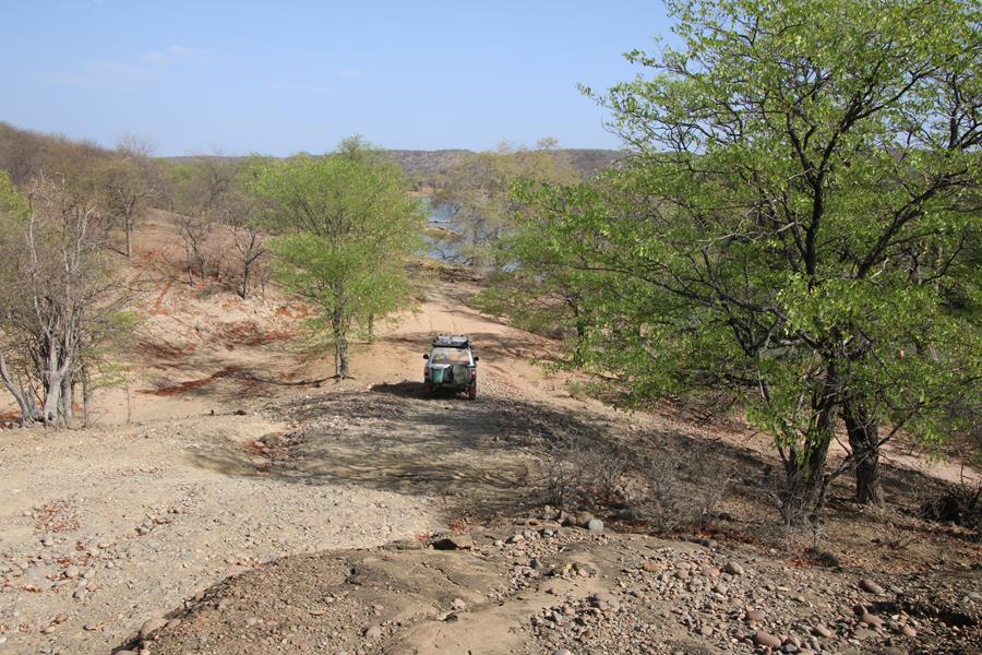 C’est avec le cœur rempli d’impressions mitigées que nous partons vers la rivière Cunene au nord à la frontière angolaise pour nous rendre à Epupa Falls. Nous nous arrêtons au bord de la rivière pour camper (2eme camp sauvage) Alain , nous pensons à toi le matin, le midi et le soir !! merci pour ton réchaud il a repris du service et s’installe très bien sous la grille .