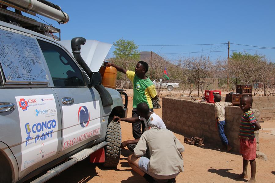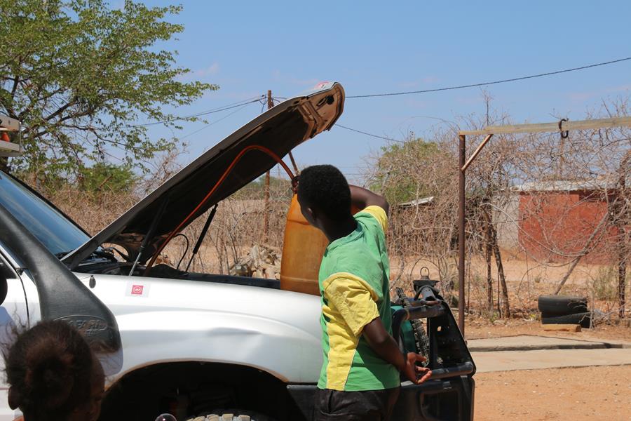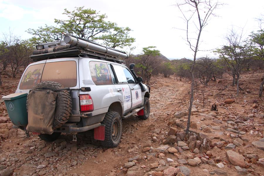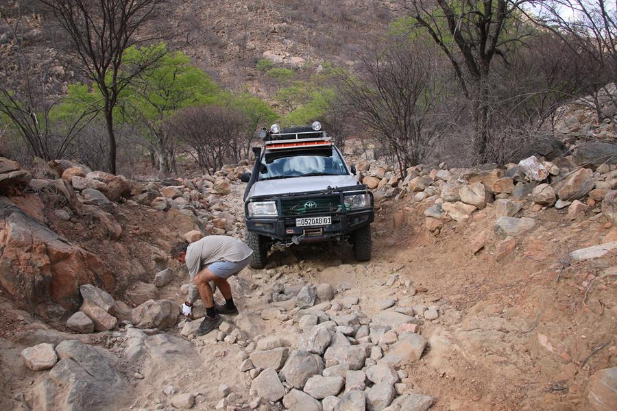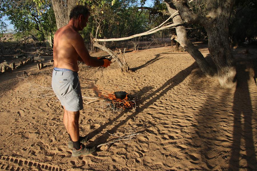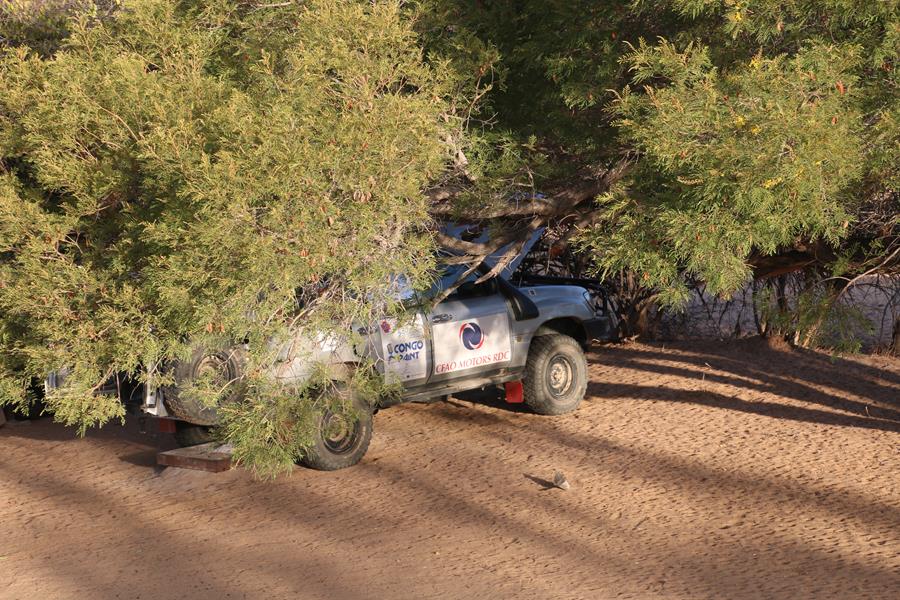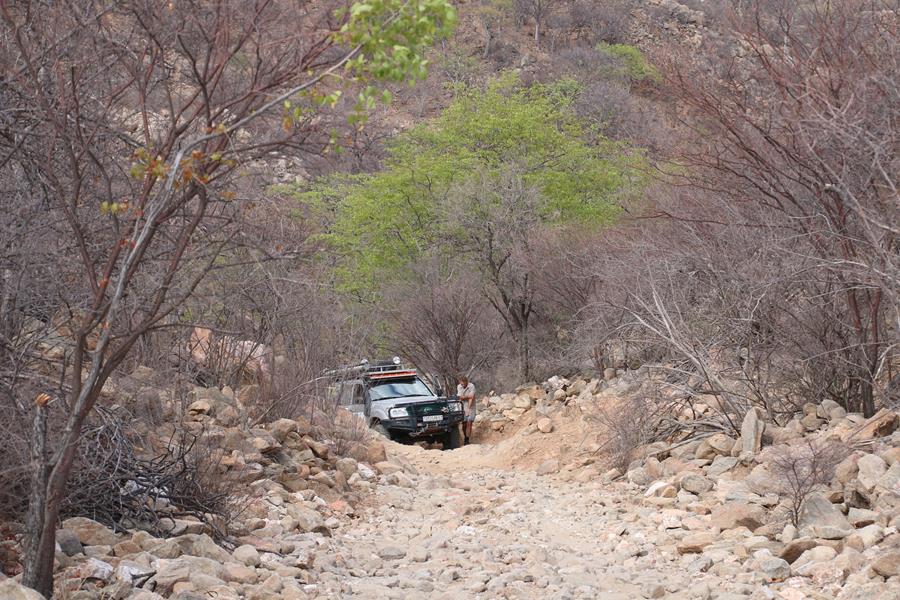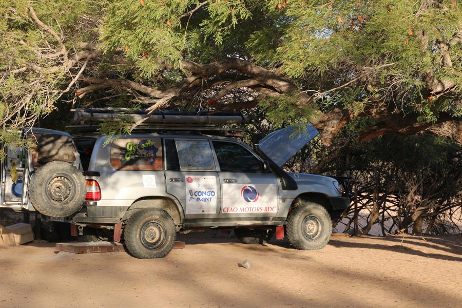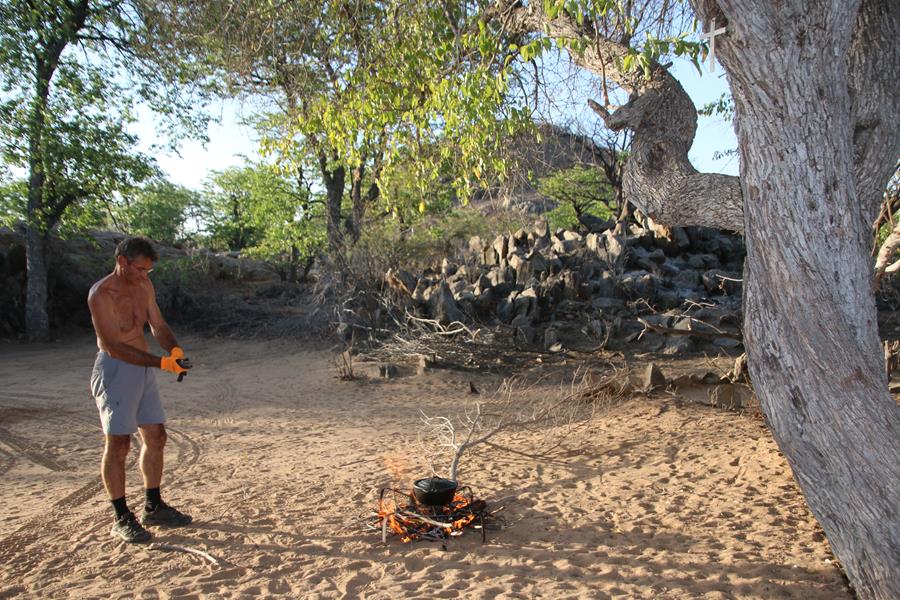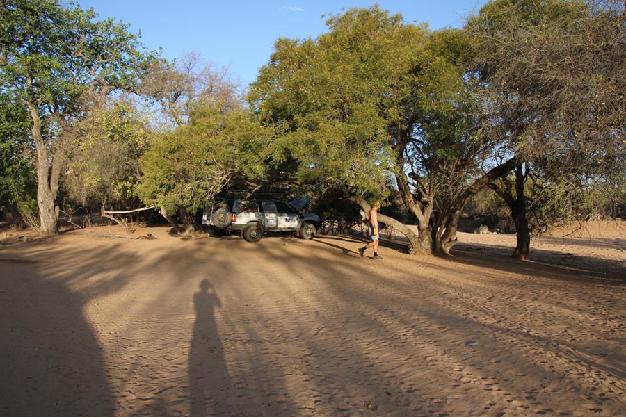 Okangwatti n’est pas une ville loin de là, nous trouvons 60 litres de gazole dans une case. Pompe artisane mais le carburant est hyper propre. On nous explique que ça serait mieux d’être à deux voitures pour passer Van Zyl’s. Ok, on est à une voiture mais on est deux donc ça ira , enfin on l’espère. Nous avons encore une soirée au camp de Van zyl’s pour réfléchir car une fois engagé impossible de faire demi tour , c’est ce que j’ai lu !