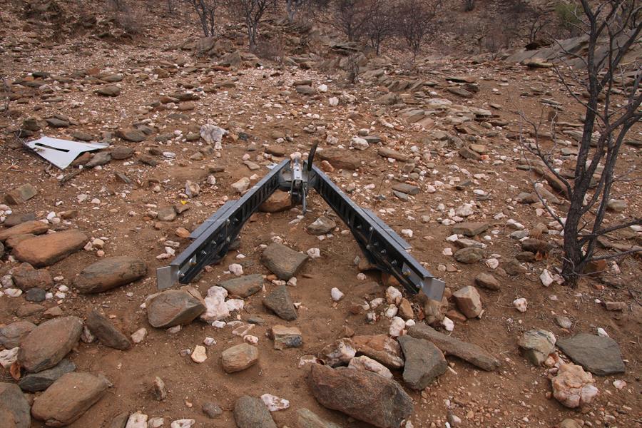 Et nous voilà parti pour l’aventure. 66 kms de piste de cailloux,  difficile, cassante, fatigante avant le camping  de Van Zyl’s Pass .Au bord de la piste , une remorque disloquée.Heureusement que nous sommes dans une excellente voiture. Pas de mal de dos malgré les kms effectués dans toutes sortes de conditions. Arrivé au camping, nous sommes tout seul. C’est un camp d’état, sauvage mais avec de l’eau et des sanitaires. On adore. quelques mots sur Van Zyl’s , On réfléchit …Une bonne nuit de repos et on verra demain
