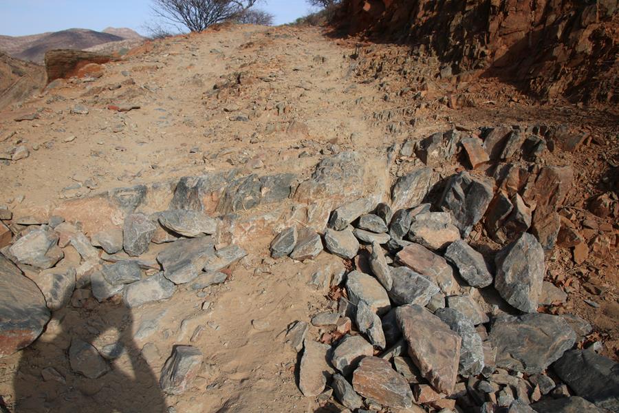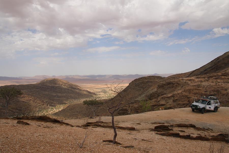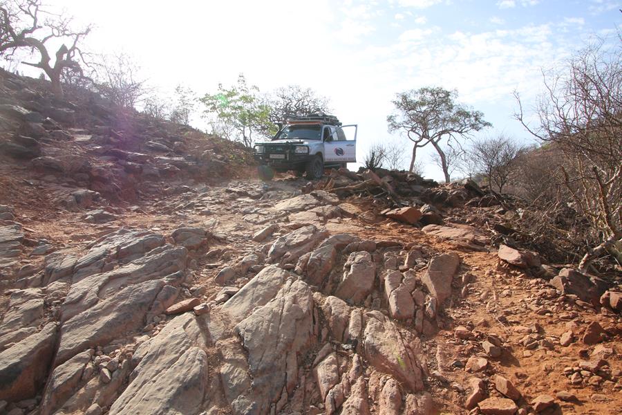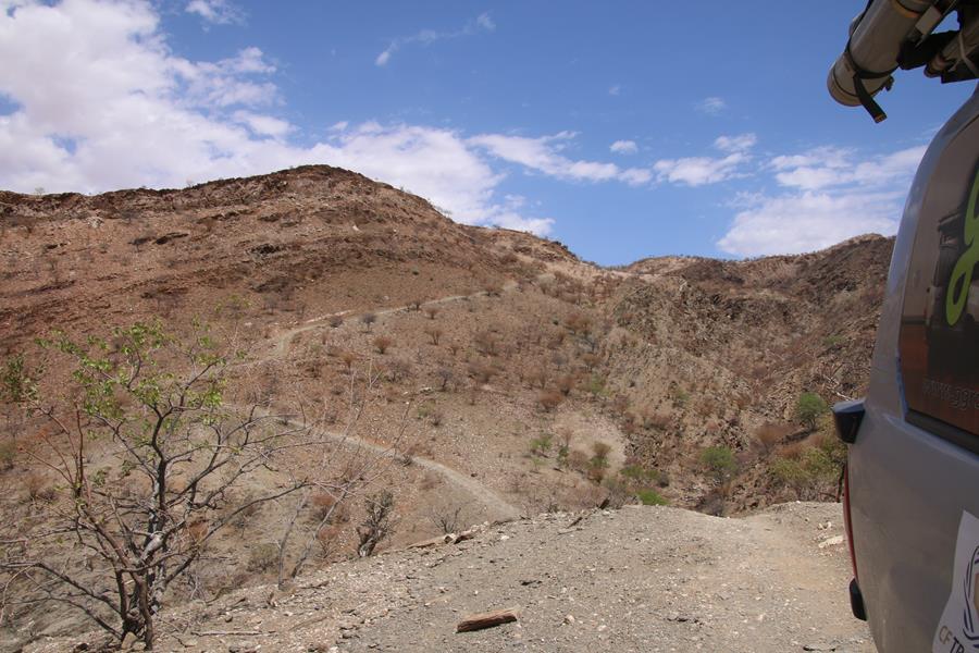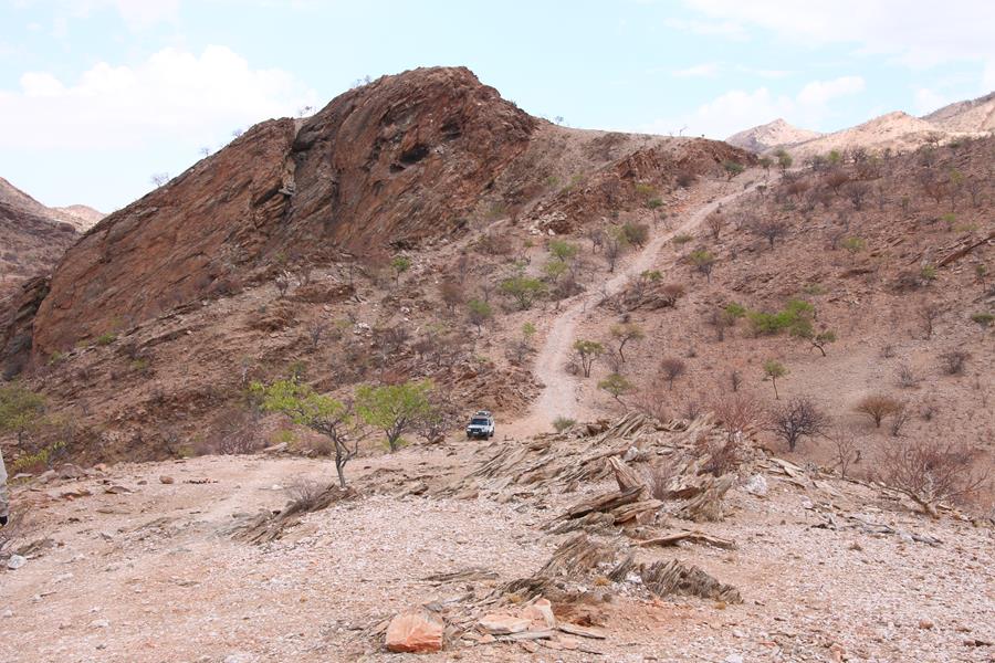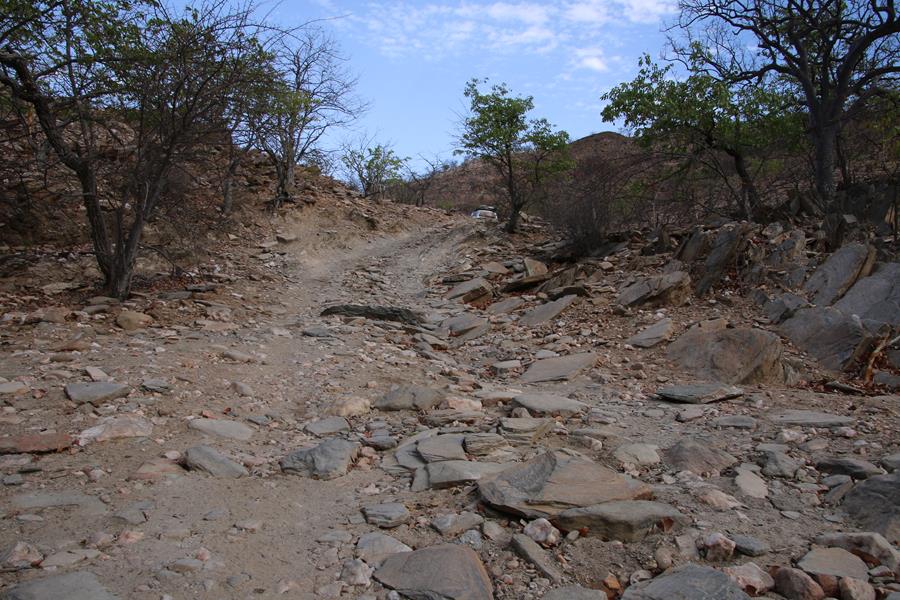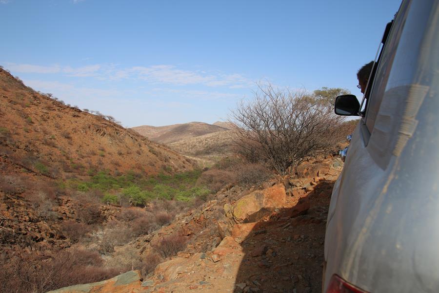 Nous écrivons nos noms sur une pierre en bas deVan zyl’s et nous partons pour les vallées de Otjinjange et Hartmann , plus connue sour le nom de Marienfluss