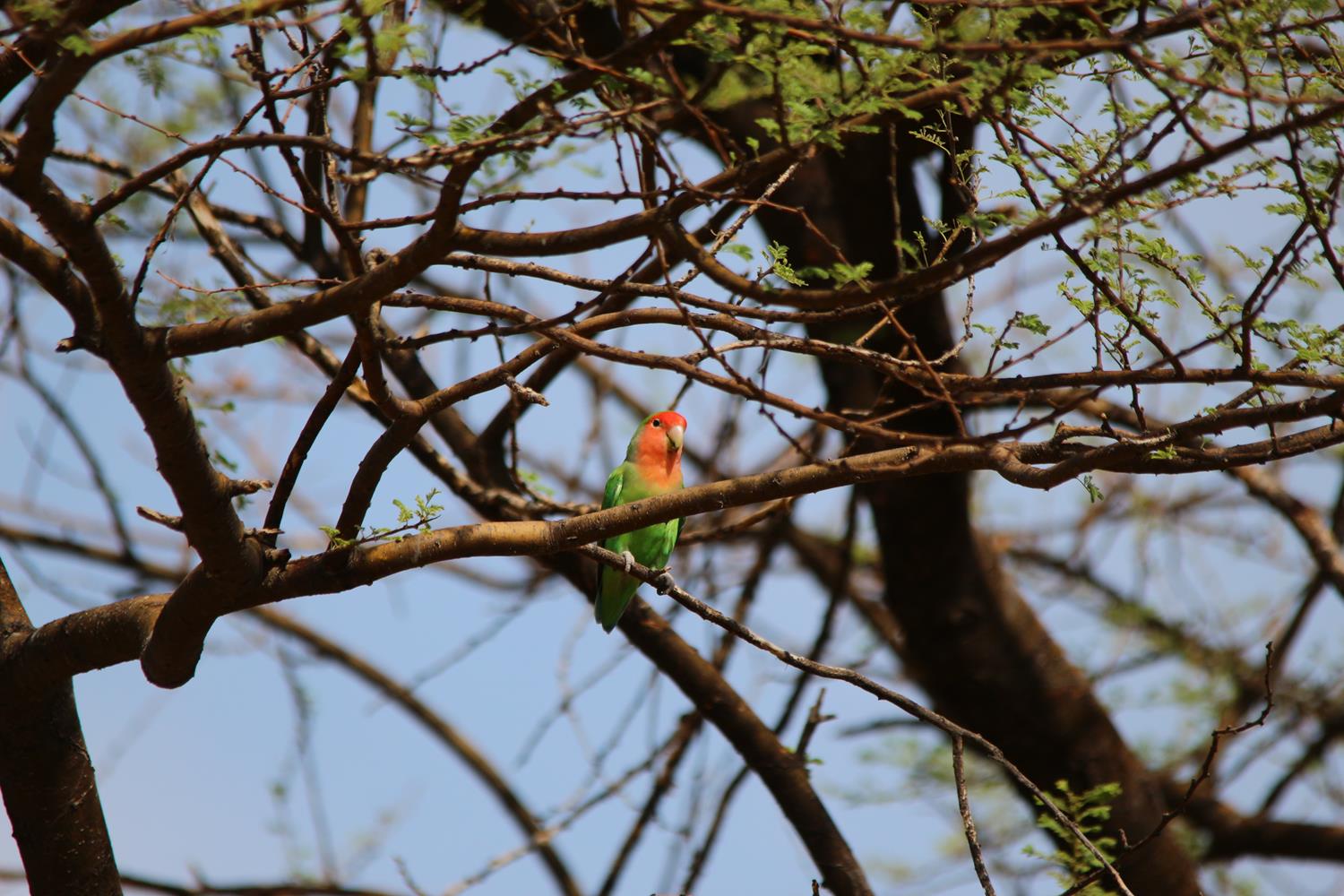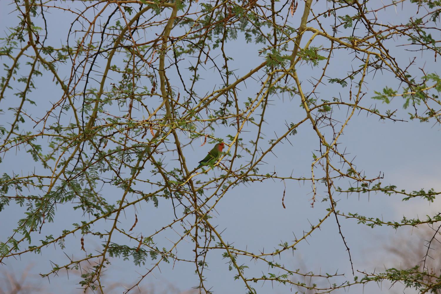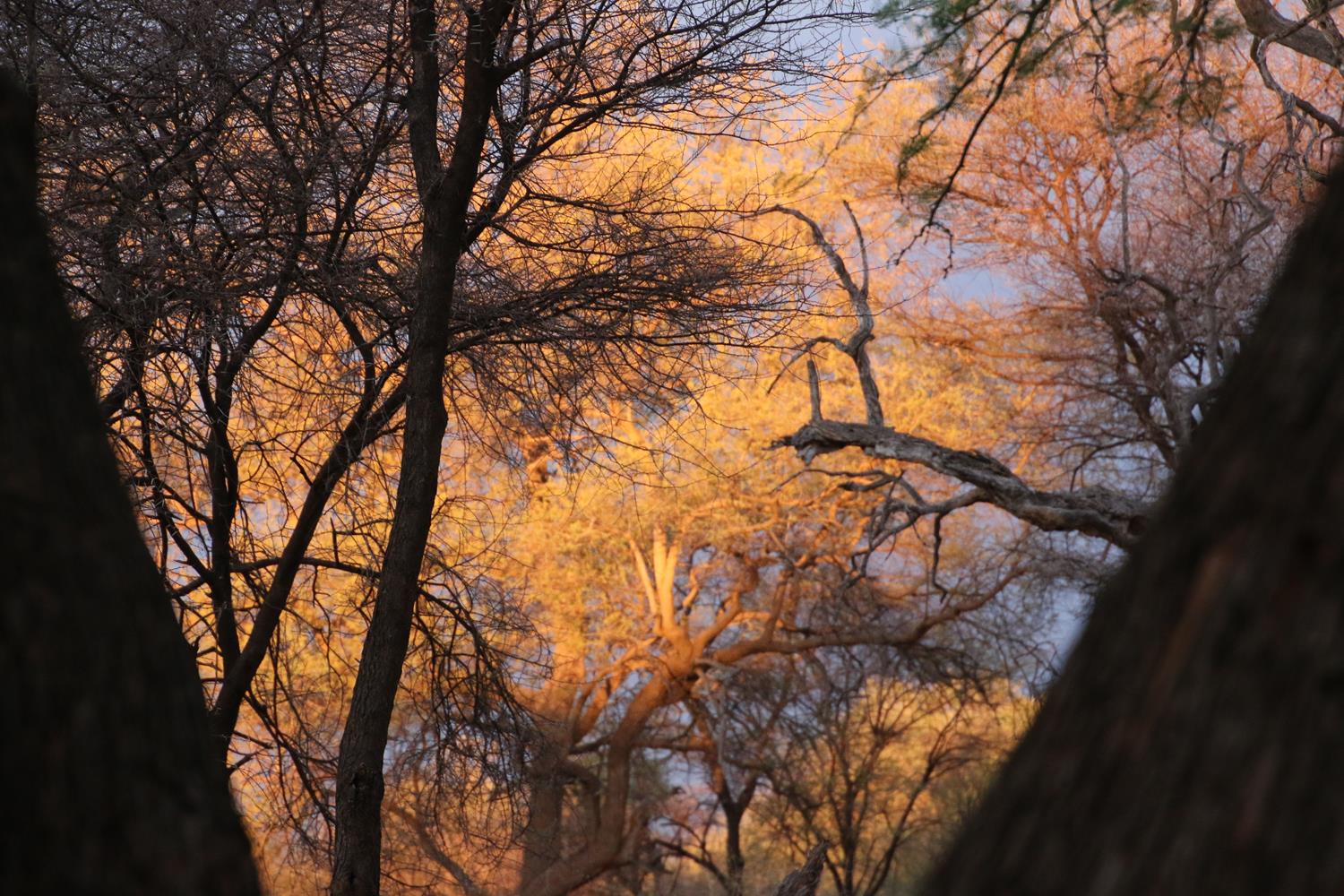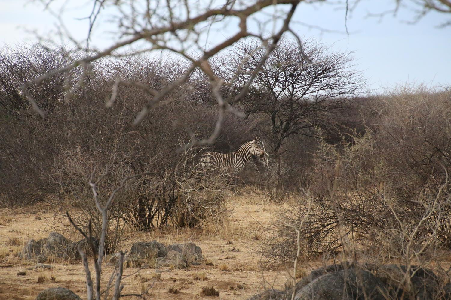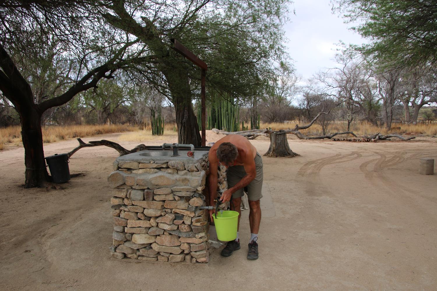 Nous trouvons un camp « camp Mara» Magnifique, niché dans des arbres, entouré de savane, nous admirons silencieux un coucher de soleil extraordinaire. Une antilope nous regarde à quelques mètres, les oiseaux vont d’arbres en arbres, c’est magique. Dans la nuit, un grand coup de tonnerre, peut-être de la pluie à venir car toujours rien malgré les gros nuages noirs. Les éclairs éclairent le ciel de tous les côtés, elles sont blanches mais nous en voyons une à plusieurs branches rouge comme de la braise, et c’est vrai on a pas fumé la moquette !. Quelques gouttes de pluie et c’est fini. Nous restons une nuit de plus pour aller crapahuter dans la montagne et visiter Omaruru.