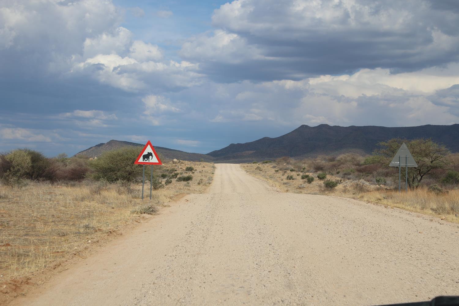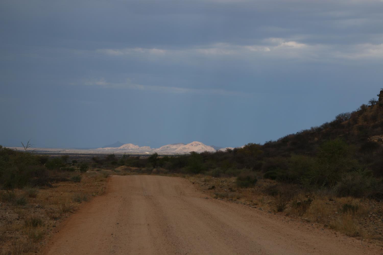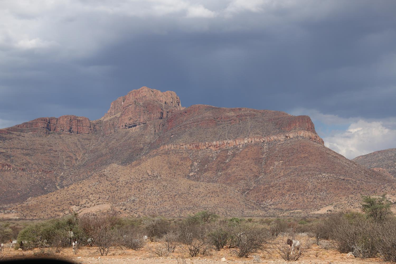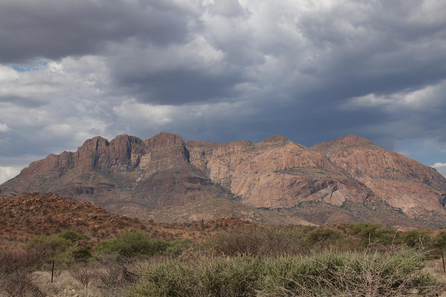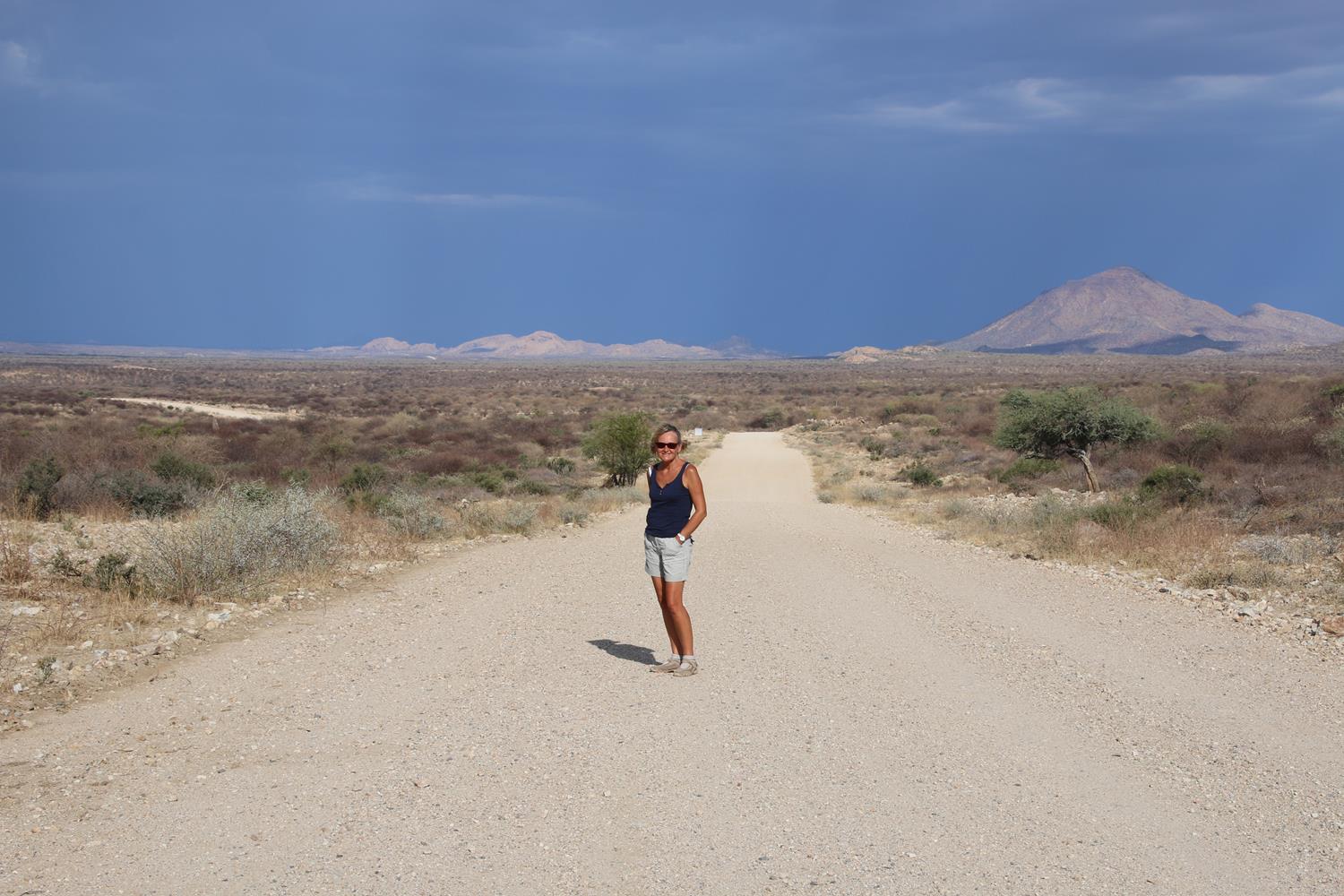 Yann voit une belle montagne à la sortie du Spitzkoppe, changement d’itinéraire et en avant vers le nord en direction d’Omururu. Excellente idée, la piste et le paysage sont fabuleux et en plus un orage se prépare, enfin de la pluie (pas vu une goutte depuis le 8 novembre).