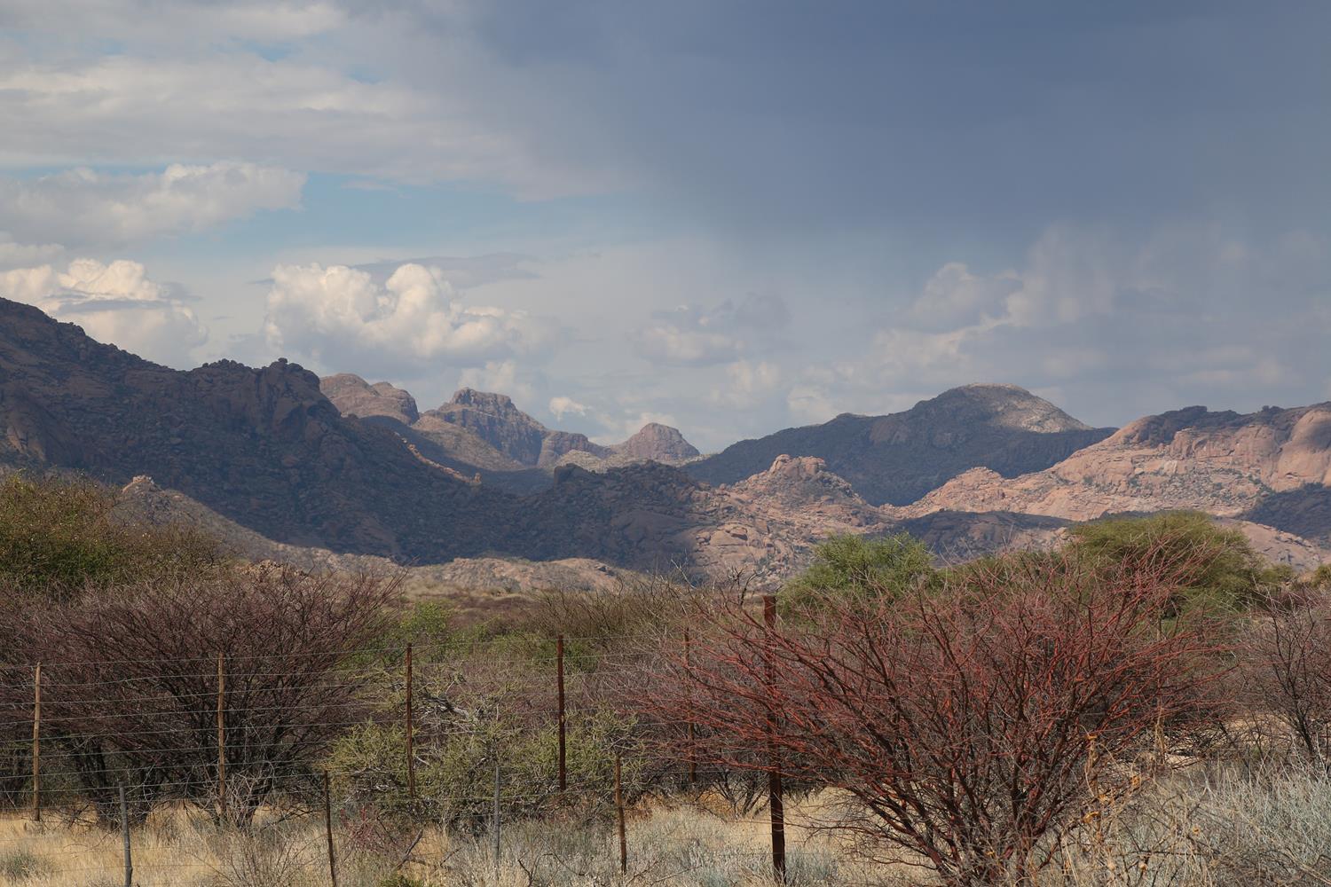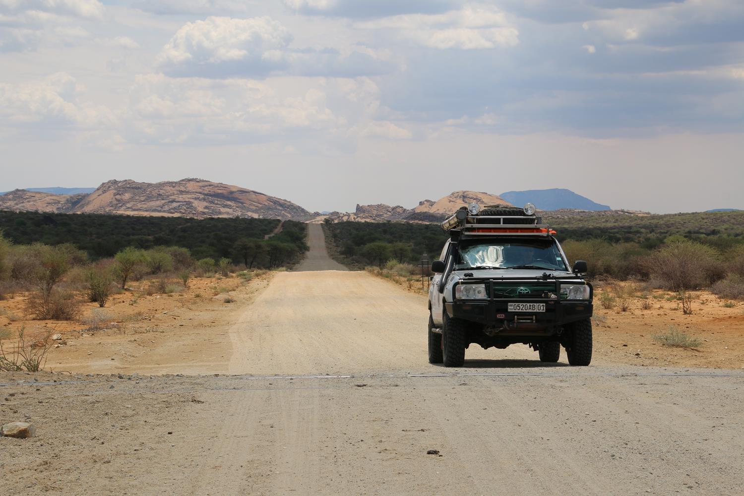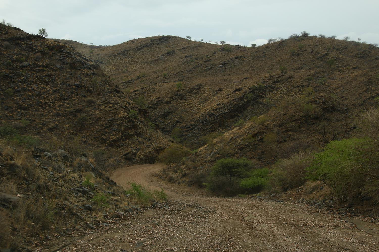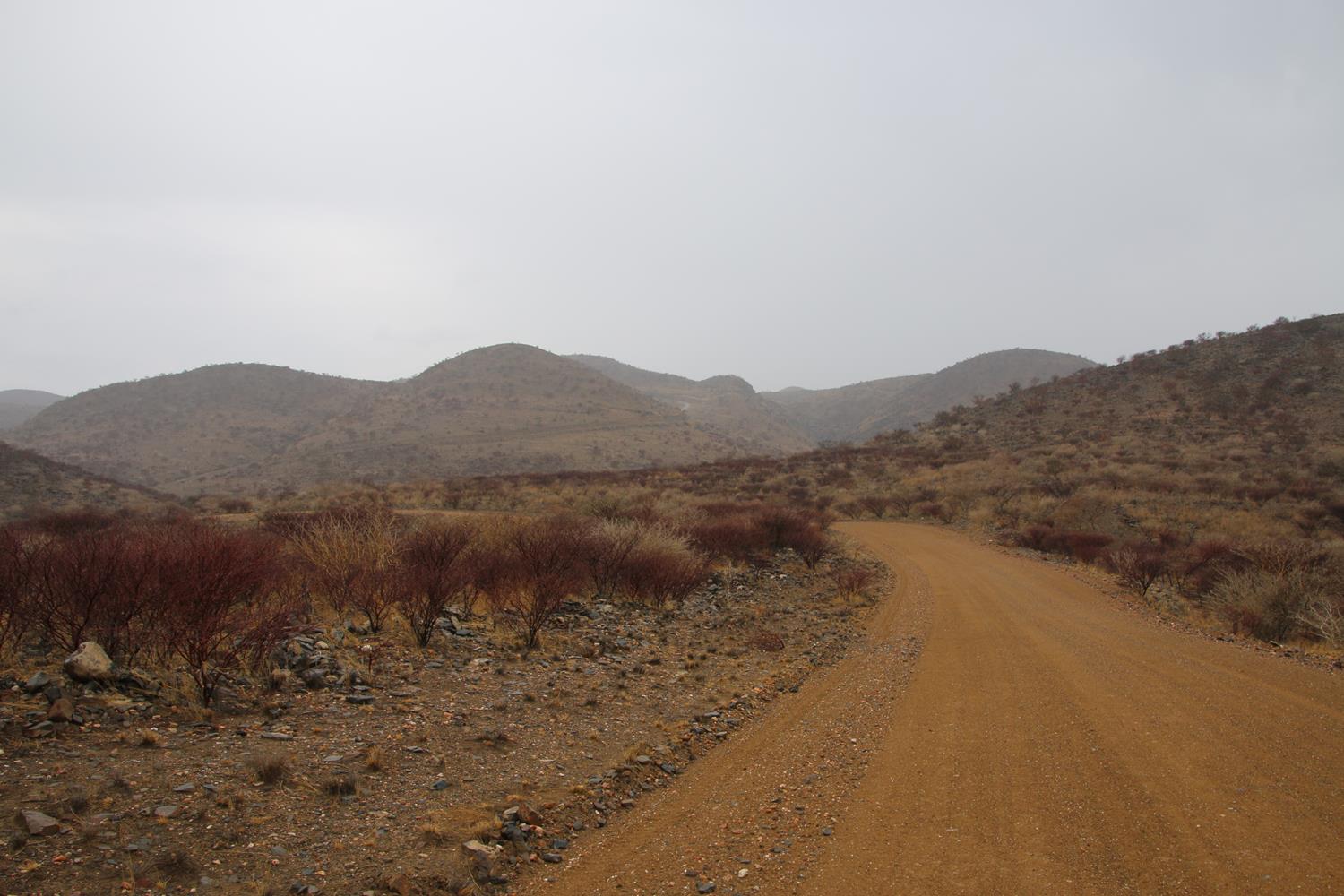 Yann voit une belle montagne à la sortie du Spitzkoppe, changement d’itinéraire et en avant vers le nord en direction d’Omururu. Excellente idée, la piste et le paysage sont fabuleux et en plus un orage se prépare, enfin de la pluie (pas vu une goutte depuis le 8 novembre).