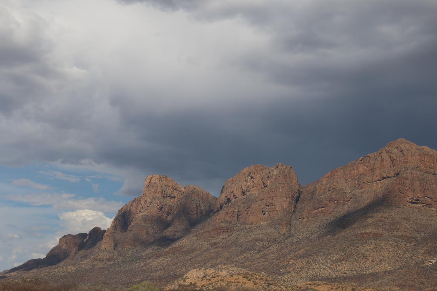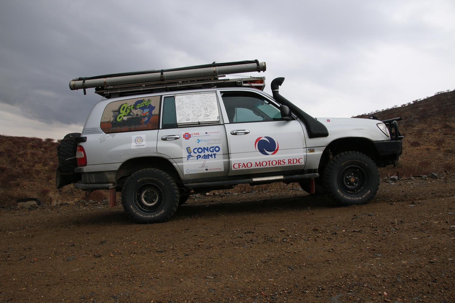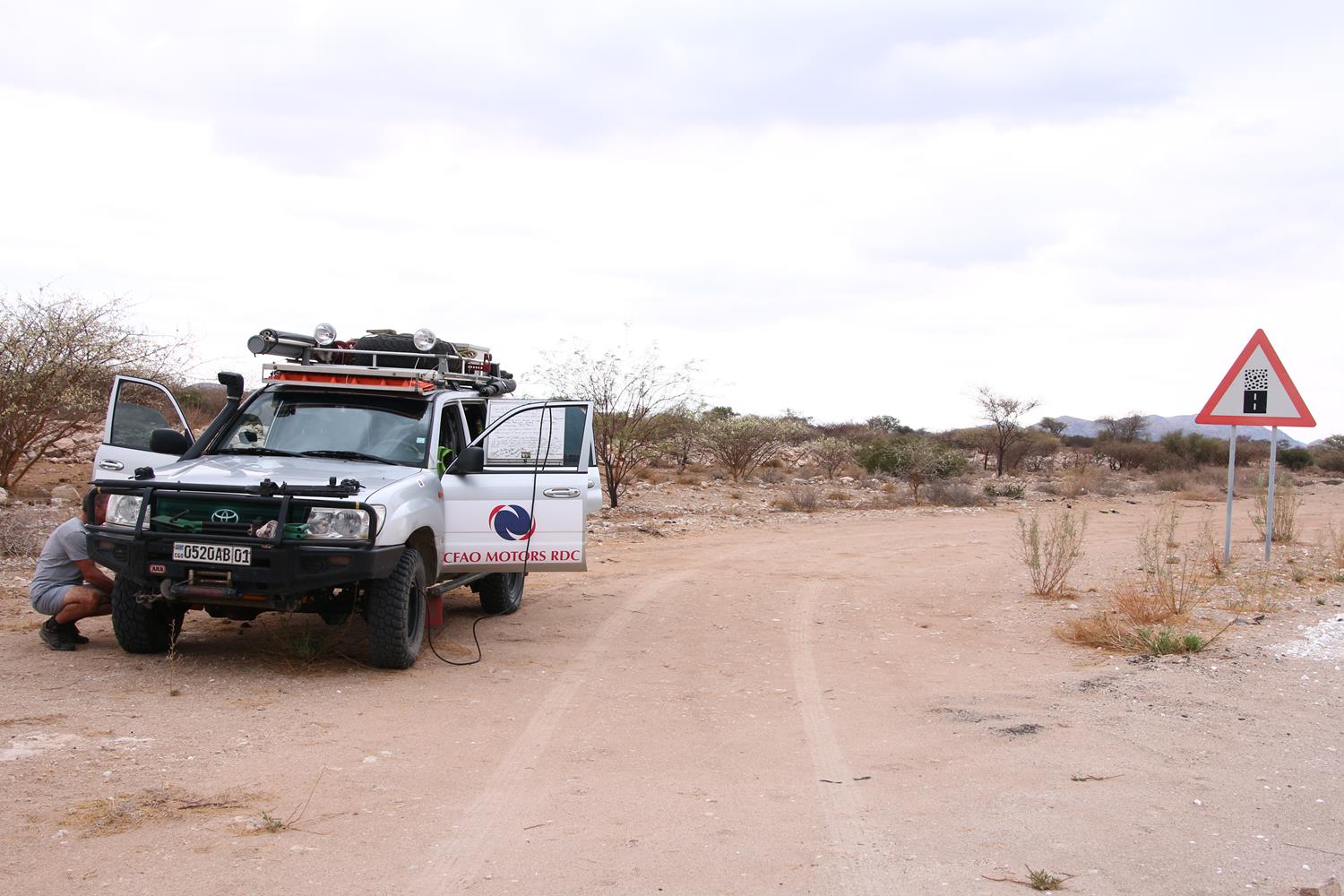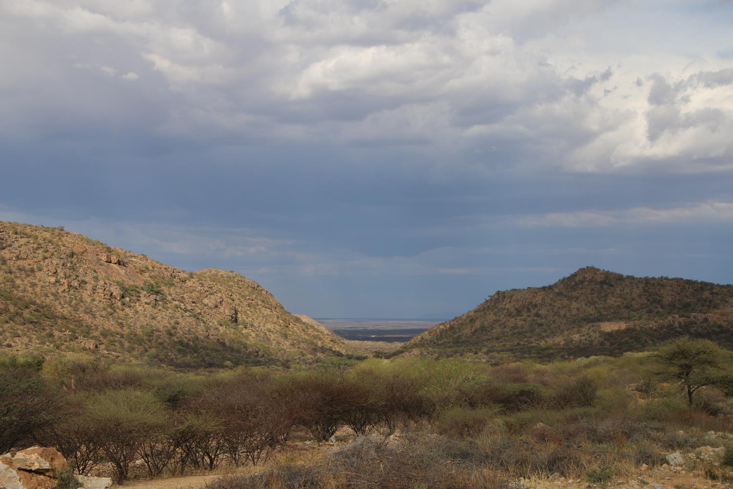 Yann voit une belle montagne à la sortie du Spitzkoppe, changement d’itinéraire et en avant vers le nord en direction d’Omururu. Excellente idée, la piste et le paysage sont fabuleux et en plus un orage se prépare, enfin de la pluie (pas vu une goutte depuis le 8 novembre).