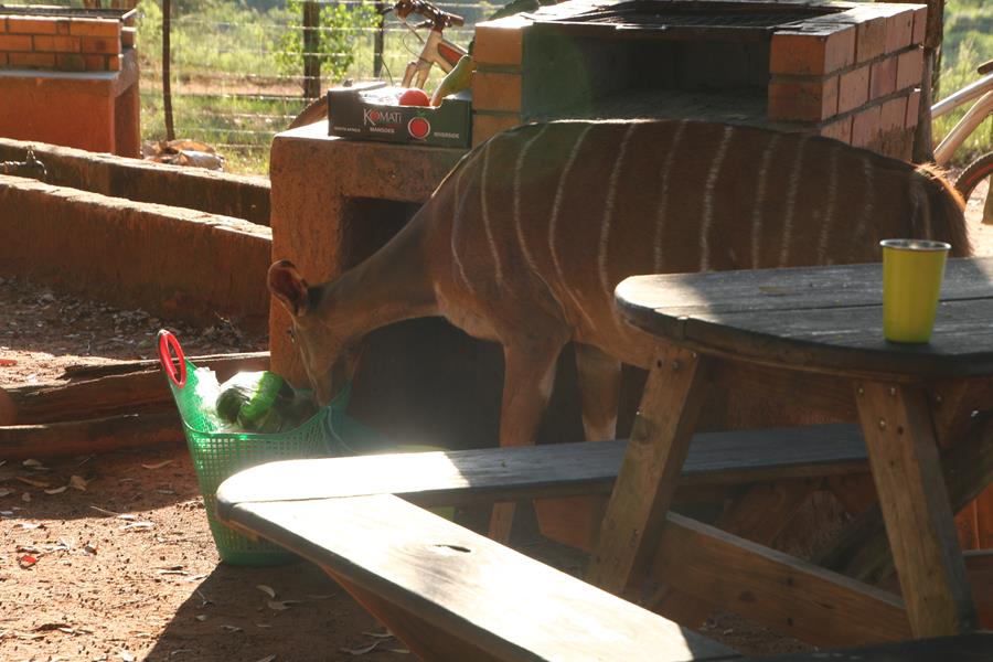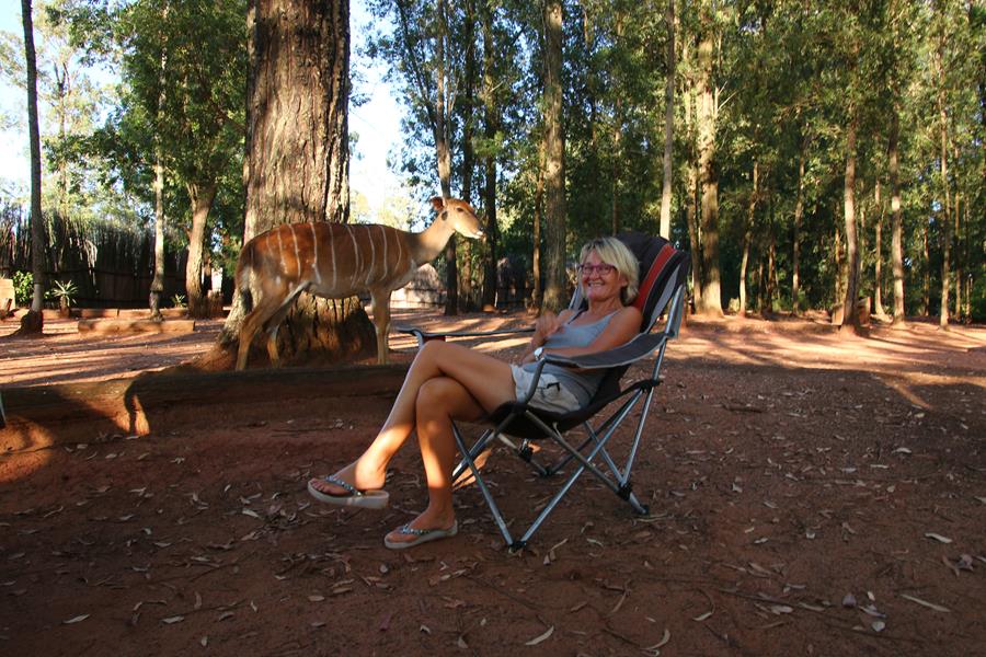 Un mot sur le camping. Très agréable, ombragé avec les antilopes qui se promènent tranquillement à l’intérieur. Tranquillement et en faisant leurs courses, nos poivrons et courgettes ont été appréciés ! Un bloc sanitaire comme nous n’en avons jamais vu. Nous avons presque envi de retirer nos chaussures avant d’y rentrer. Une personne passe discrètement nettoyer après chaque utilisateur. Impressionnant