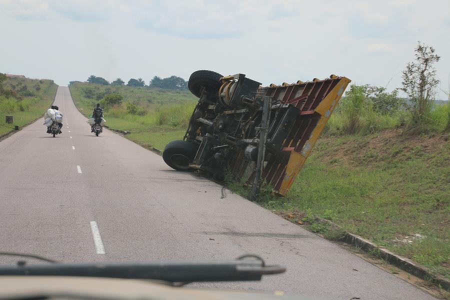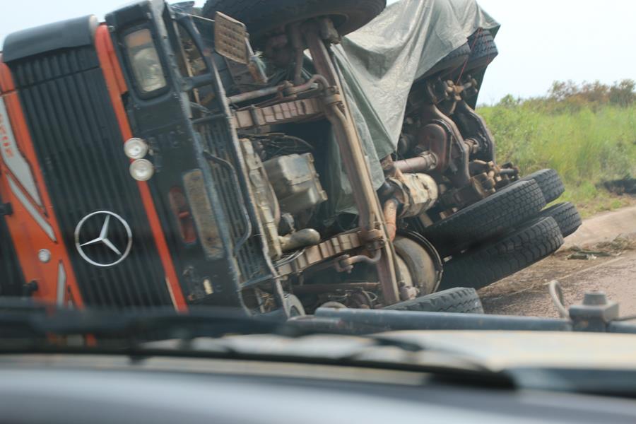 2 contrôles : 1 à la sortie du Kasai (avant le pont) et le 2eme à l’entrée du Bandundu ( après le pont!)