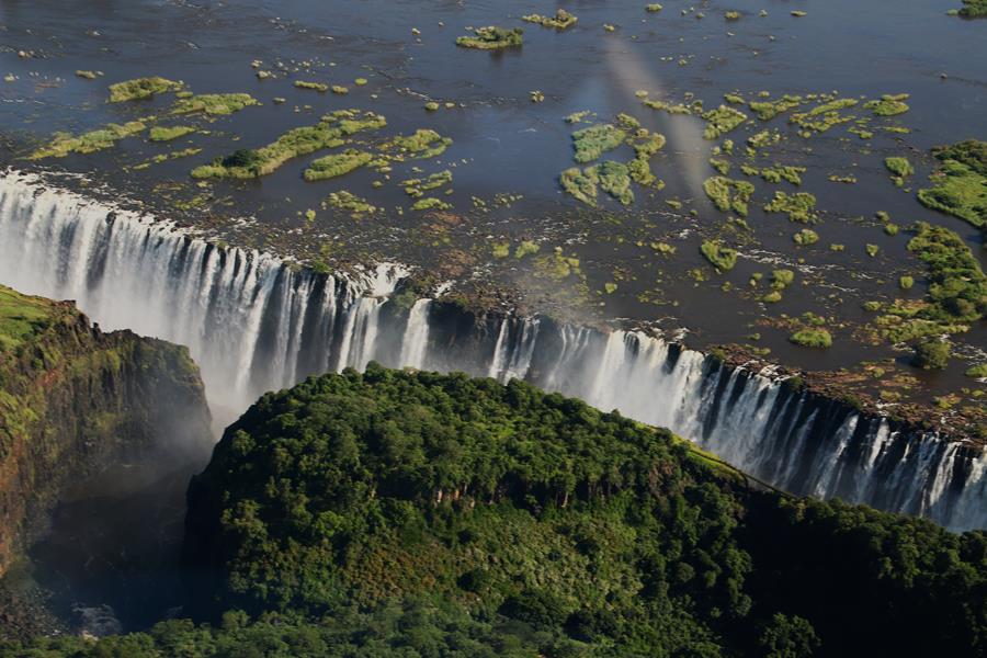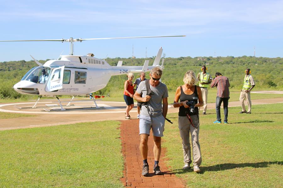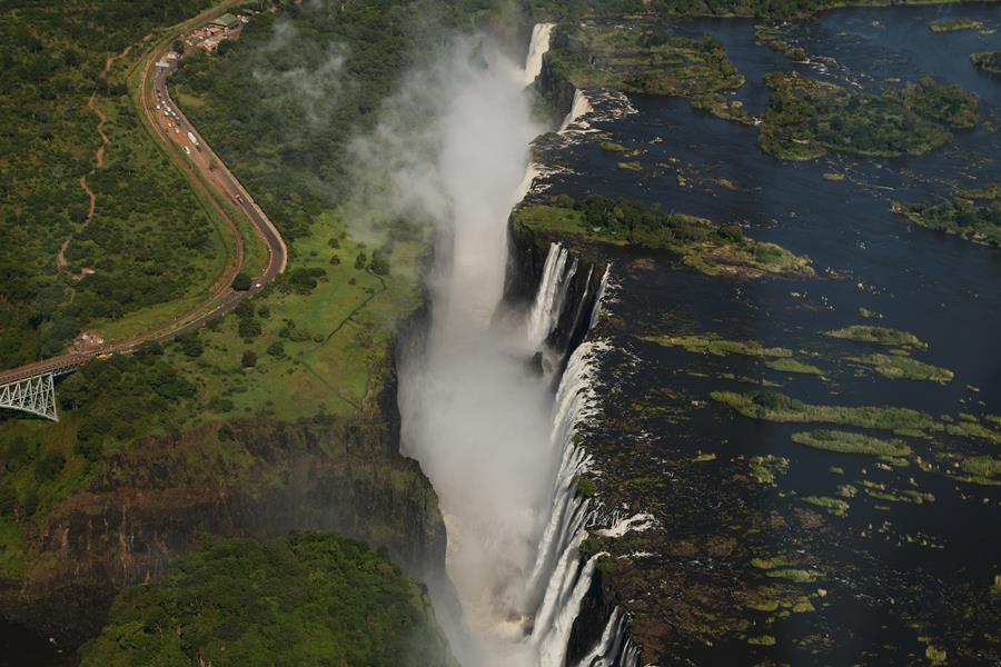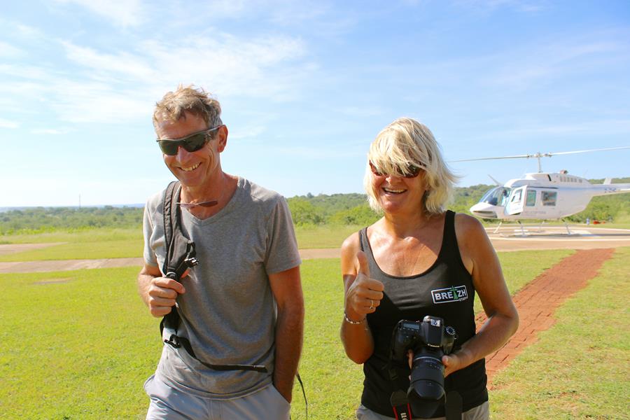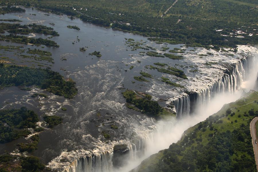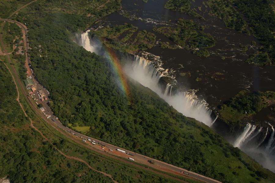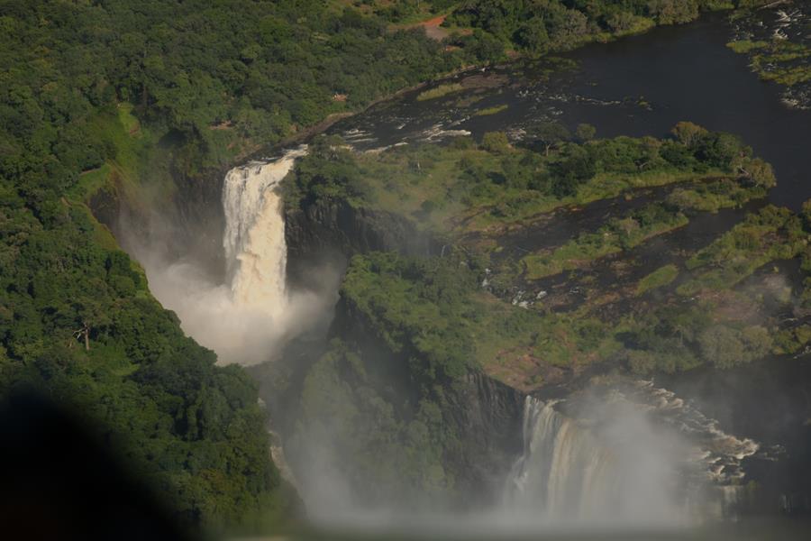 18 Février : Après une longue hésitation, nous décidons de survoler les chutes en hélico 13 minutes. Organisation TOP, réservation au camp. Ils viennent vous chercher en voiture. Petit briefing sympa avant de monter dans l’hélico. Décollage en douceur et 30 secondes après c’est le grand spectacle, extraordinaire, ++++++ Retour, la vidéo est prête avec nos photos etc … en 5 minutes ils nous font visionner le tout. On achète ou pas. Bref des vrais pros. J’avais lu dans un guide que les habitants de Victoria Falls se montraient attentifs à la demande des visiteurs en matière de sécurité, qualité et stabilité afin que ceux-ci gardent un souvenir impérissable de leur séjour. C’EST VRAI.